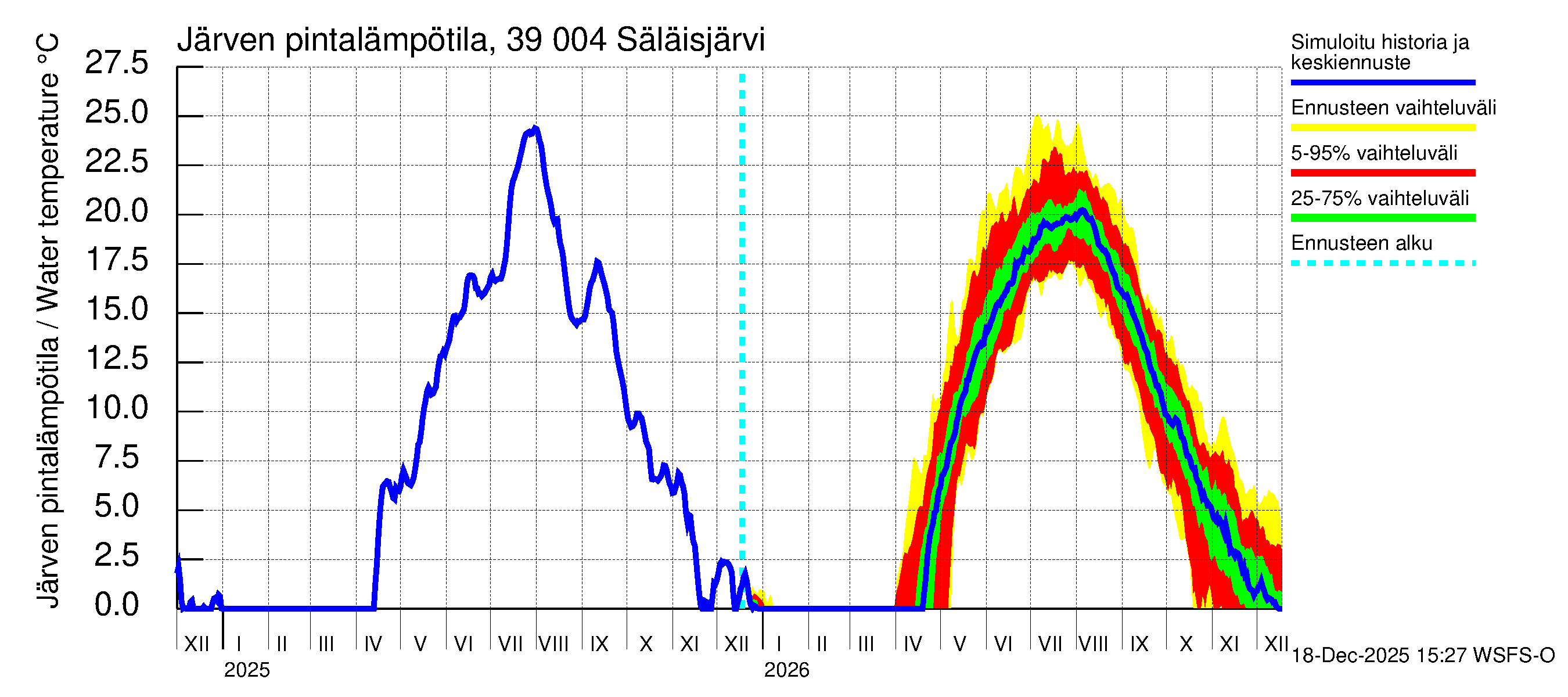 Närpiönjoen vesistöalue - Säläisjärvi: Järven pintalämpötila