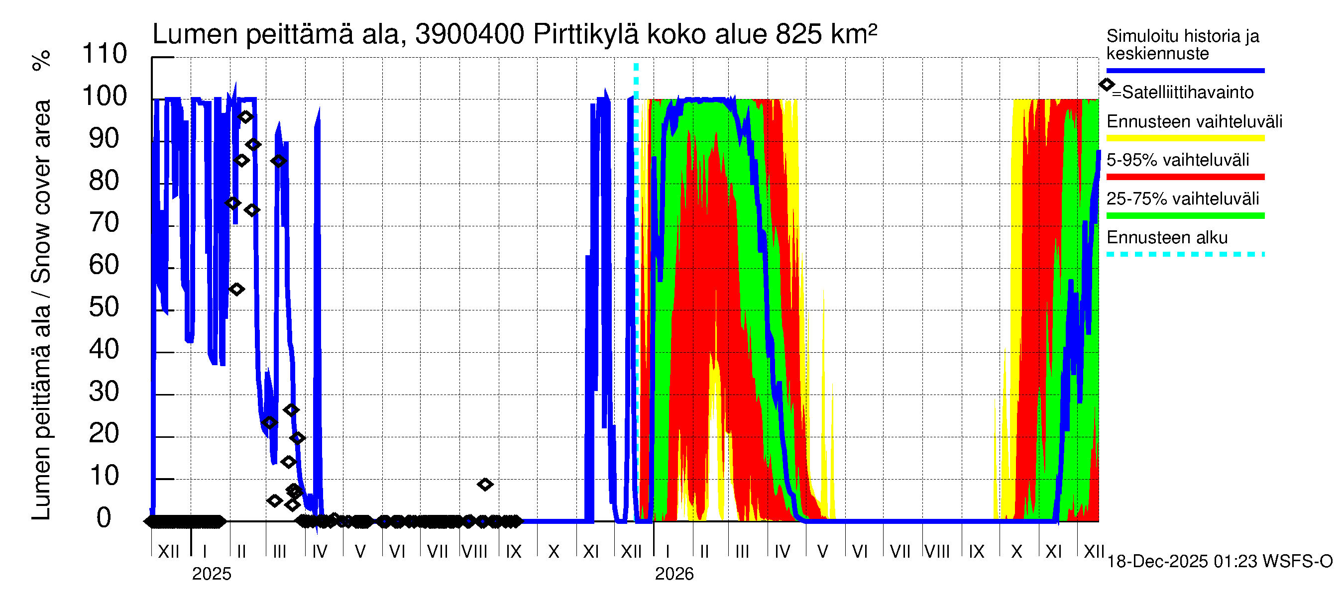 Närpiönjoen vesistöalue - Pirttikylä: Lumen peittämä ala