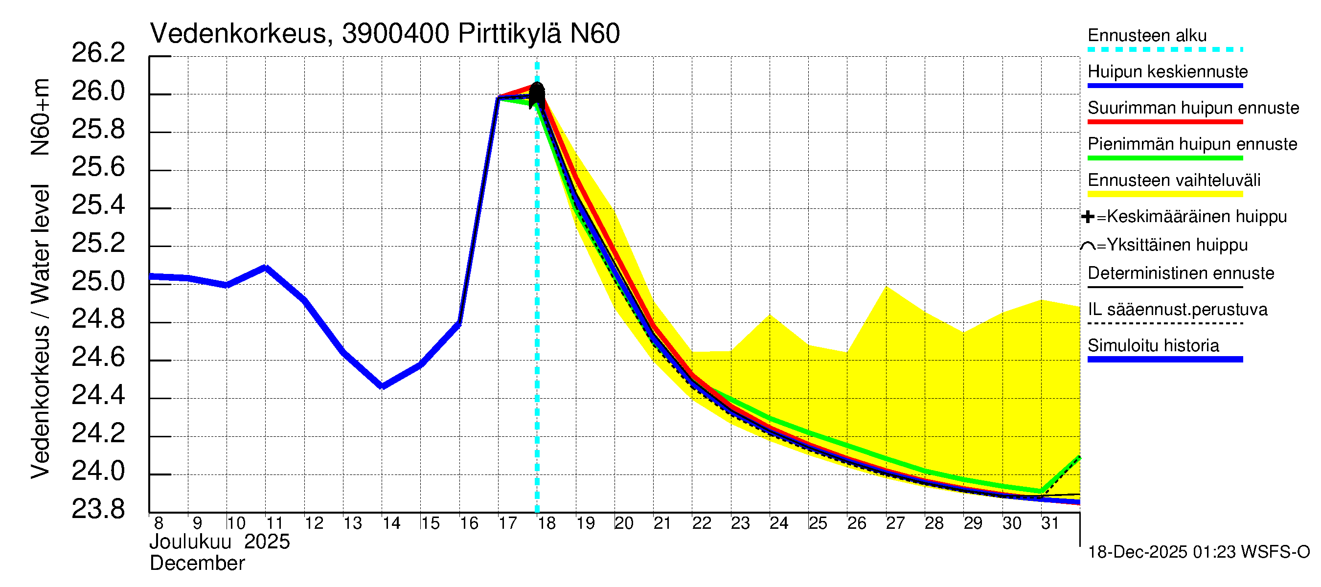 Närpiönjoen vesistöalue - Pirttikylä: Vedenkorkeus - huippujen keski- ja ääriennusteet