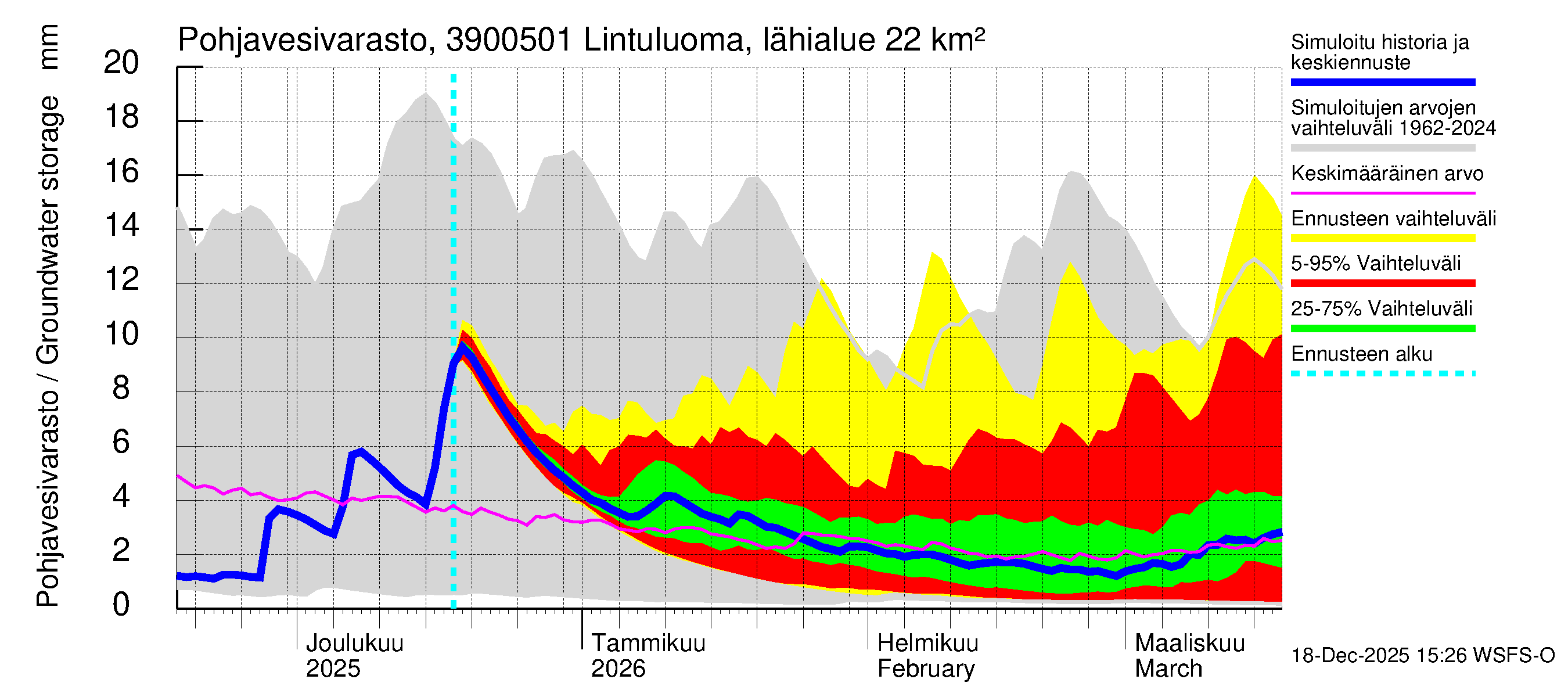 Närpiönjoen vesistöalue - Lintuluoma Jurva: Virtaama / juoksutus - huippujen keski- ja ääriennusteet