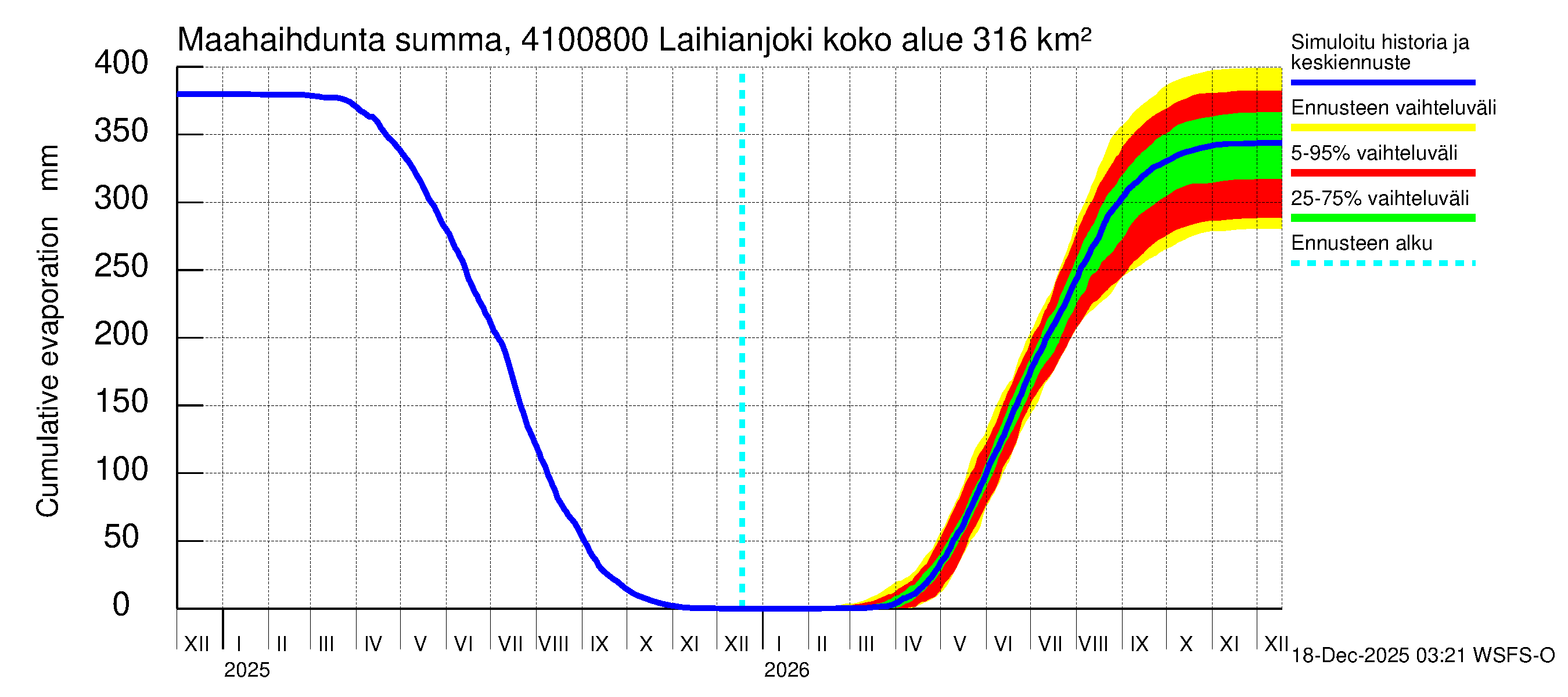Laihianjoen vesistöalue - Laihianjoki: Haihdunta maa-alueelta - summa