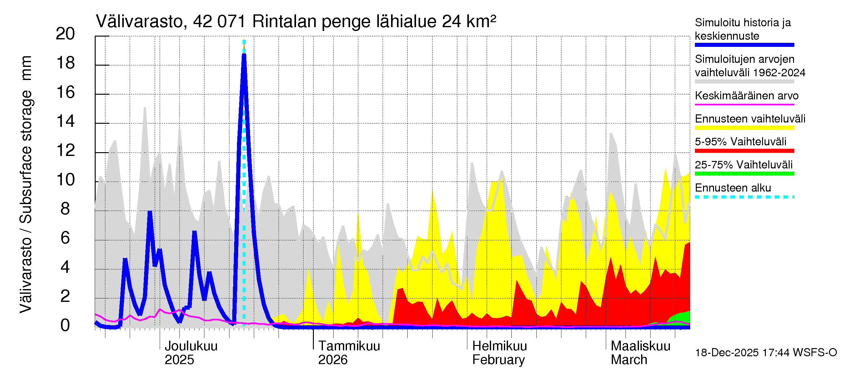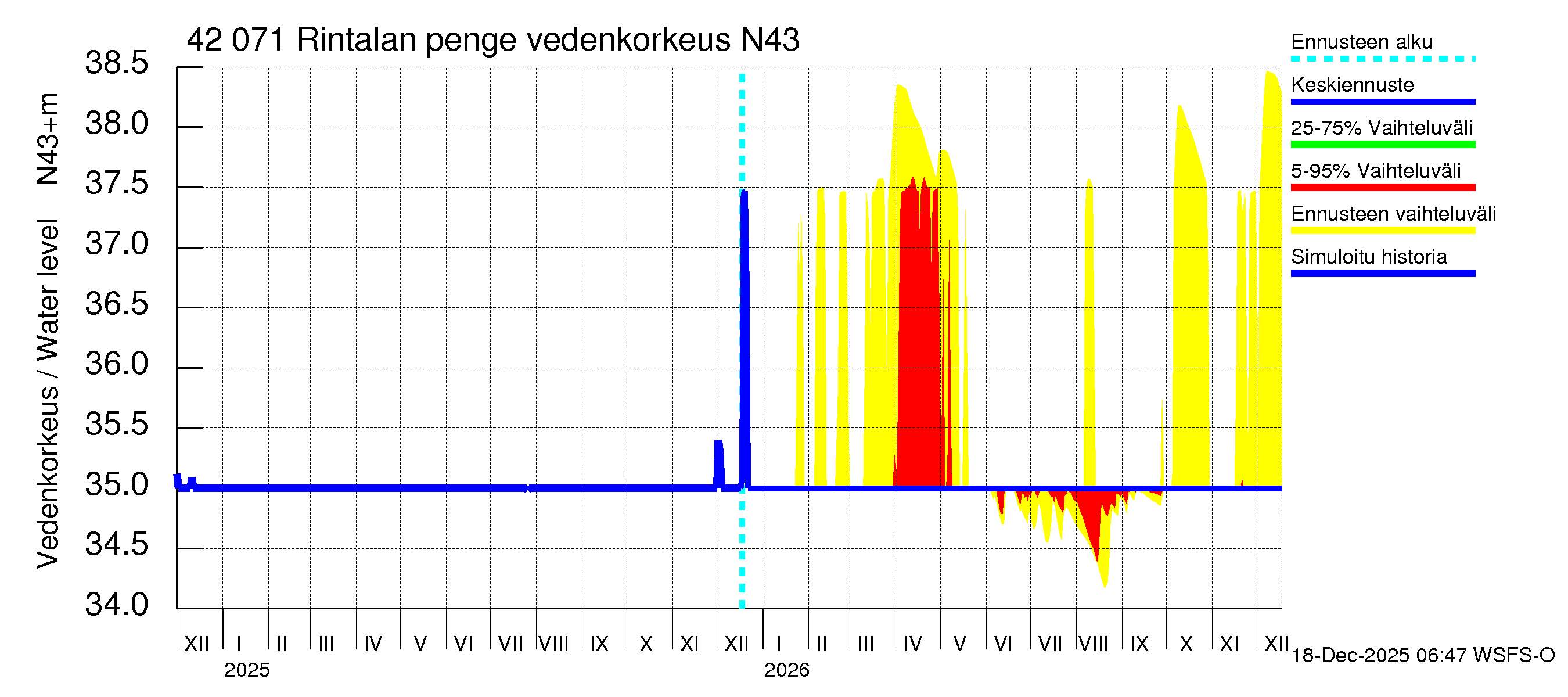 Kyrönjoen vesistöalue - Rintalan pengerrys: Vedenkorkeus - huippujen keski- ja ääriennusteet
