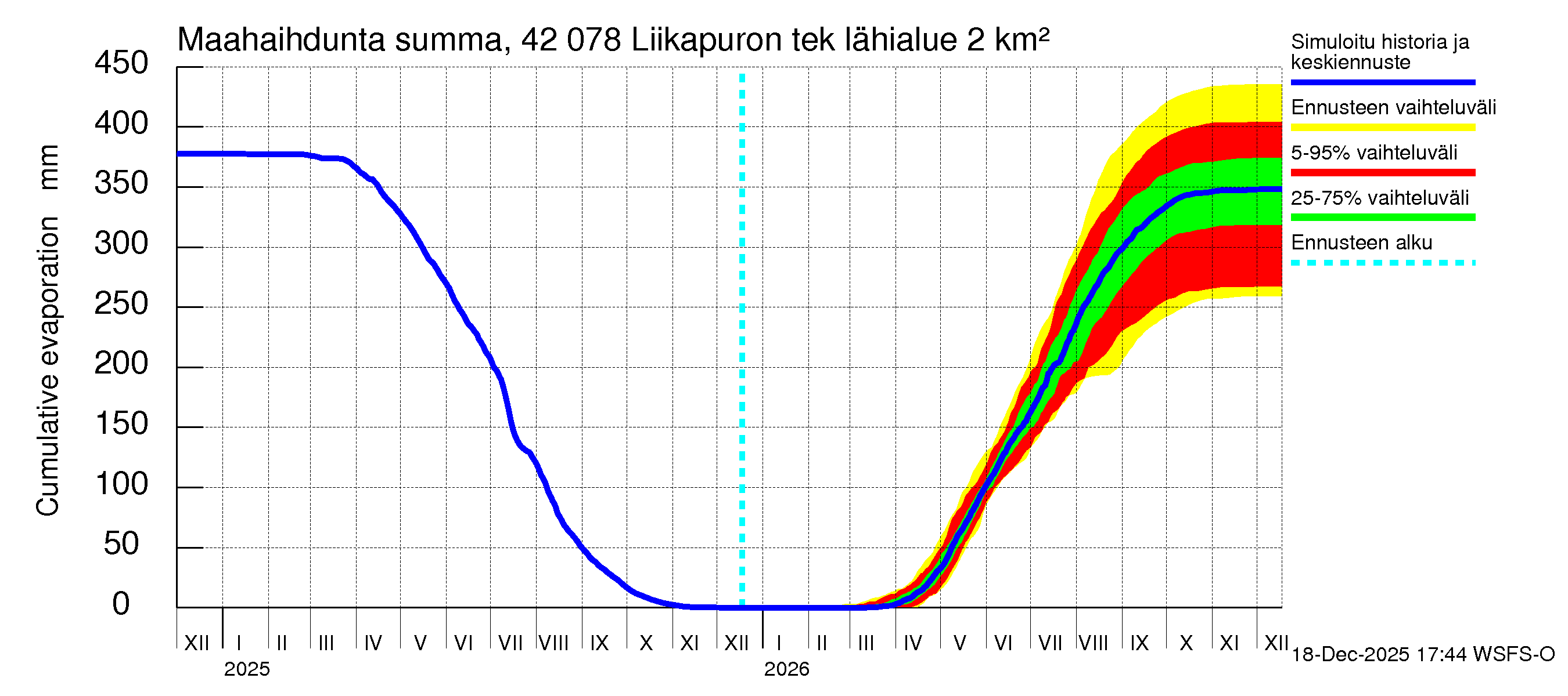 Kyrönjoen vesistöalue - Liikapuron tekojärvi: Haihdunta maa-alueelta - summa