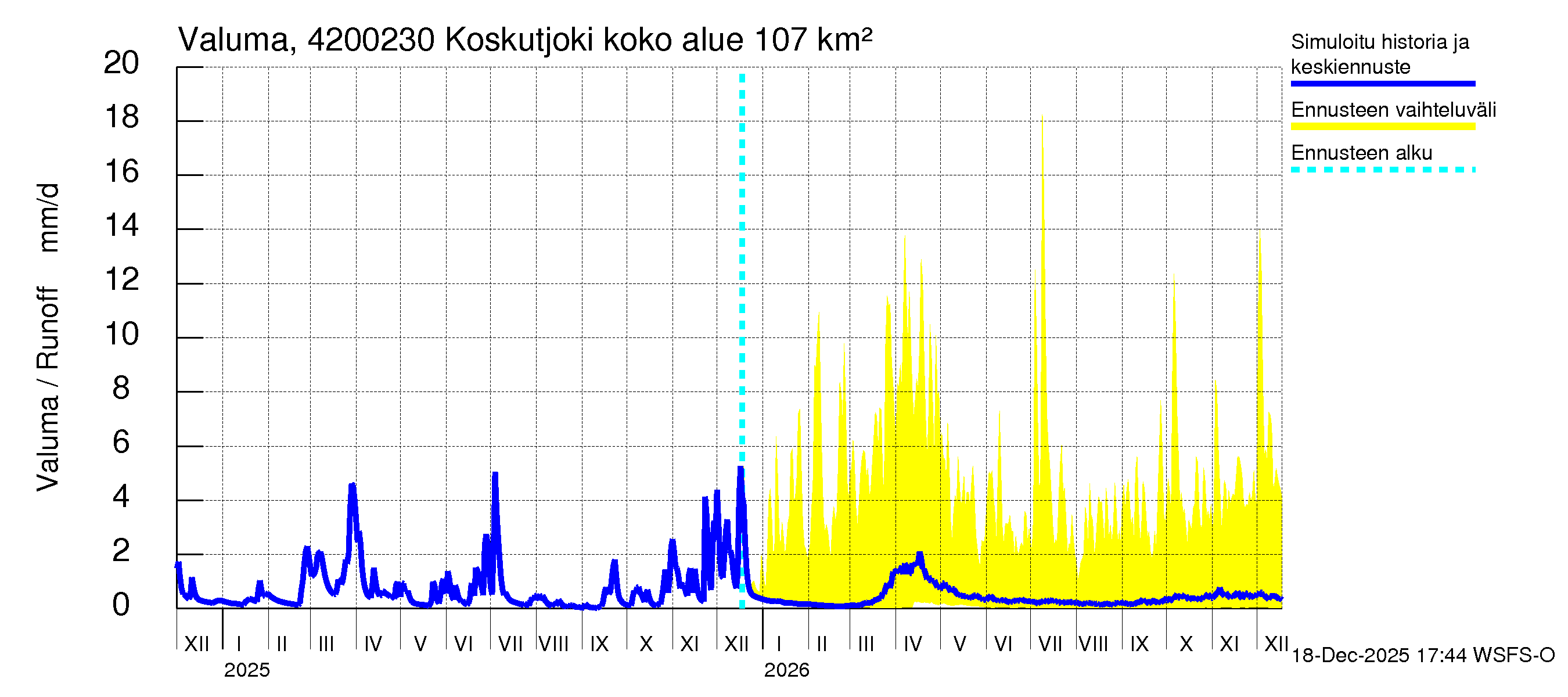 Kyrönjoen vesistöalue - Koskutjoki: Virtaama / juoksutus - huippujen keski- ja ääriennusteet
