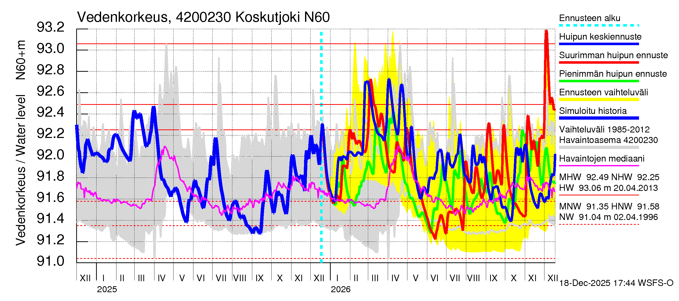 Kyrönjoen vesistöalue - Koskutjoki: Vedenkorkeus - huippujen keski- ja ääriennusteet