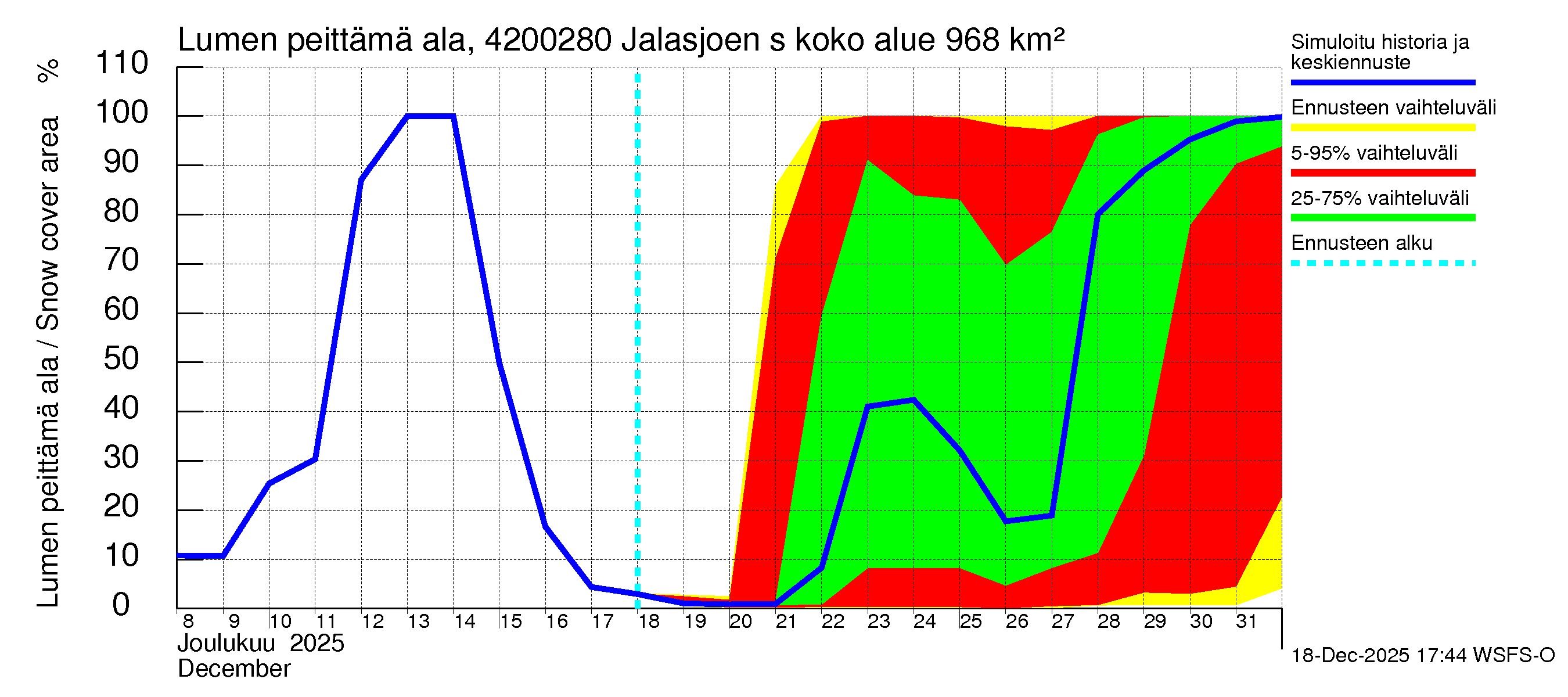 Kyrönjoen vesistöalue - Jalasjoen säännöstelypato: Lumen peittämä ala