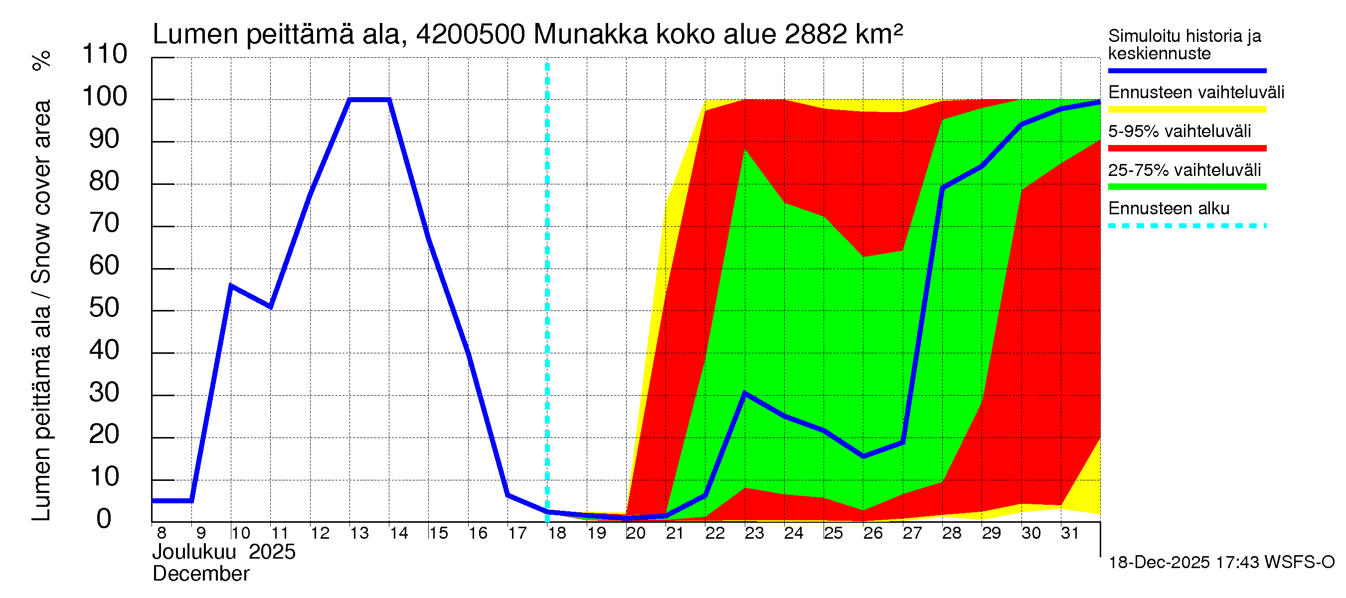 Kyrönjoen vesistöalue - Munakka: Lumen peittämä ala