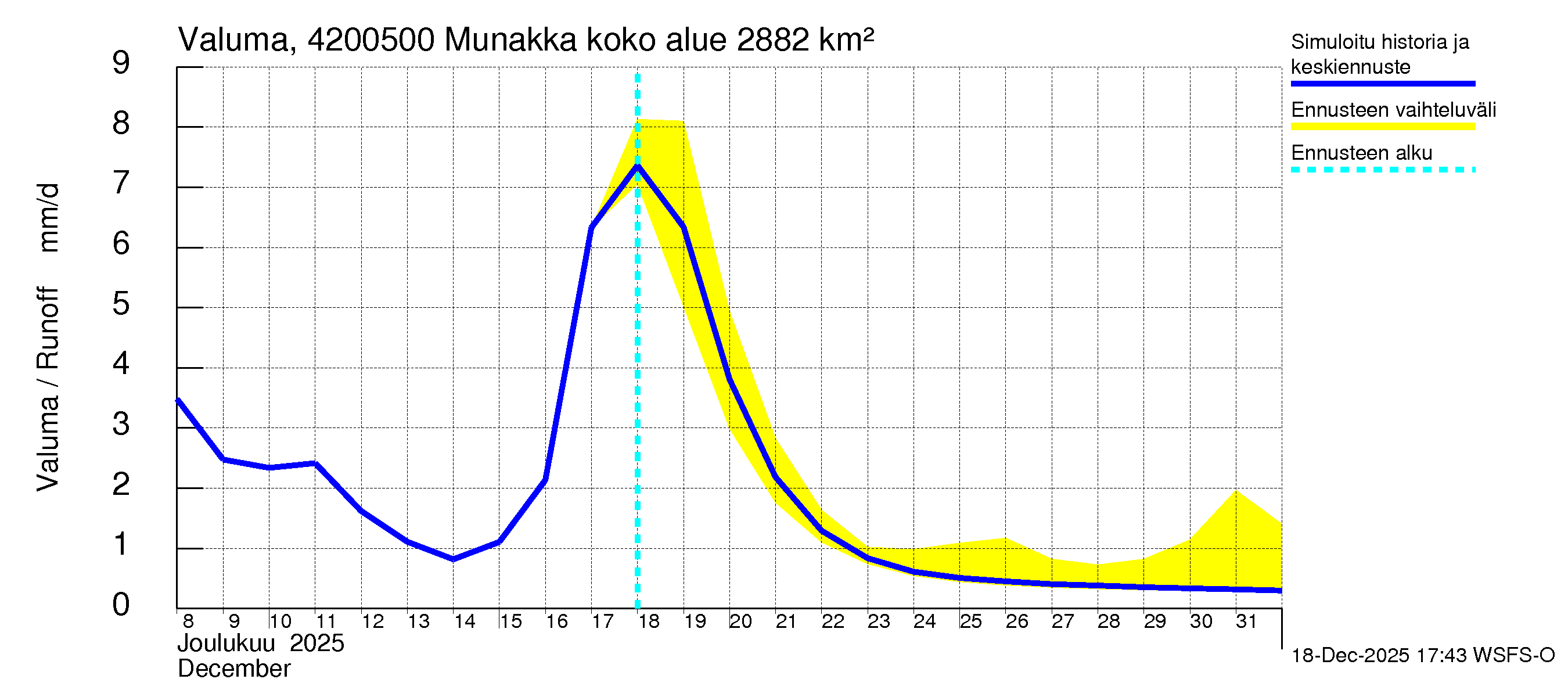 Asiantuntijan työpöytä > Kyrönjoen vesistöalue > Munakka > Koko valuma-alue Ennustekuvien tulkinta