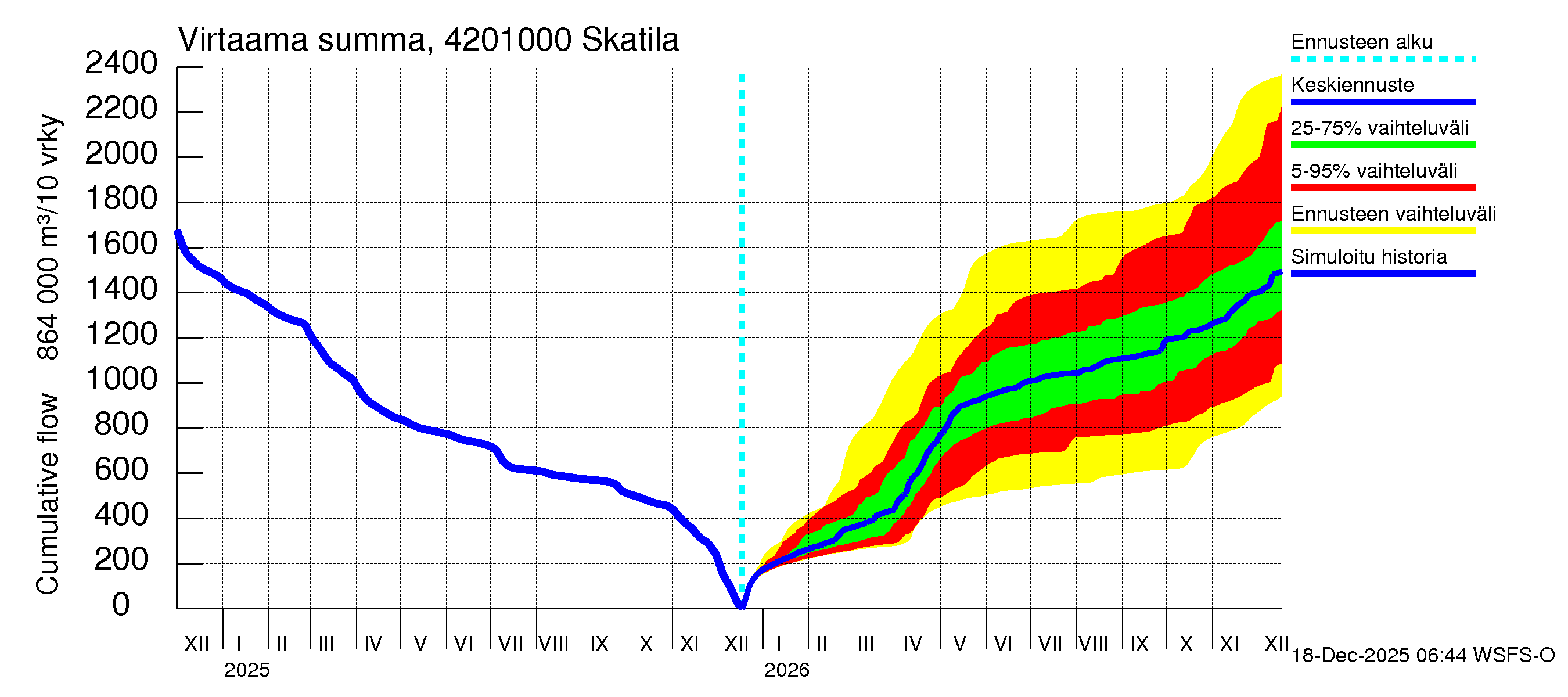 Kyrönjoen vesistöalue - Skatila: Virtaama / juoksutus - jakaumaennuste