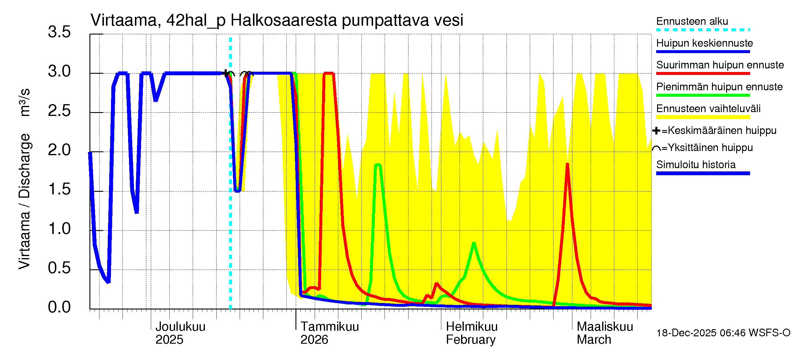 Kyrönjoen vesistöalue - Halkosaaresta pumpattava vesi: Virtaama / juoksutus - huippujen keski- ja ääriennusteet