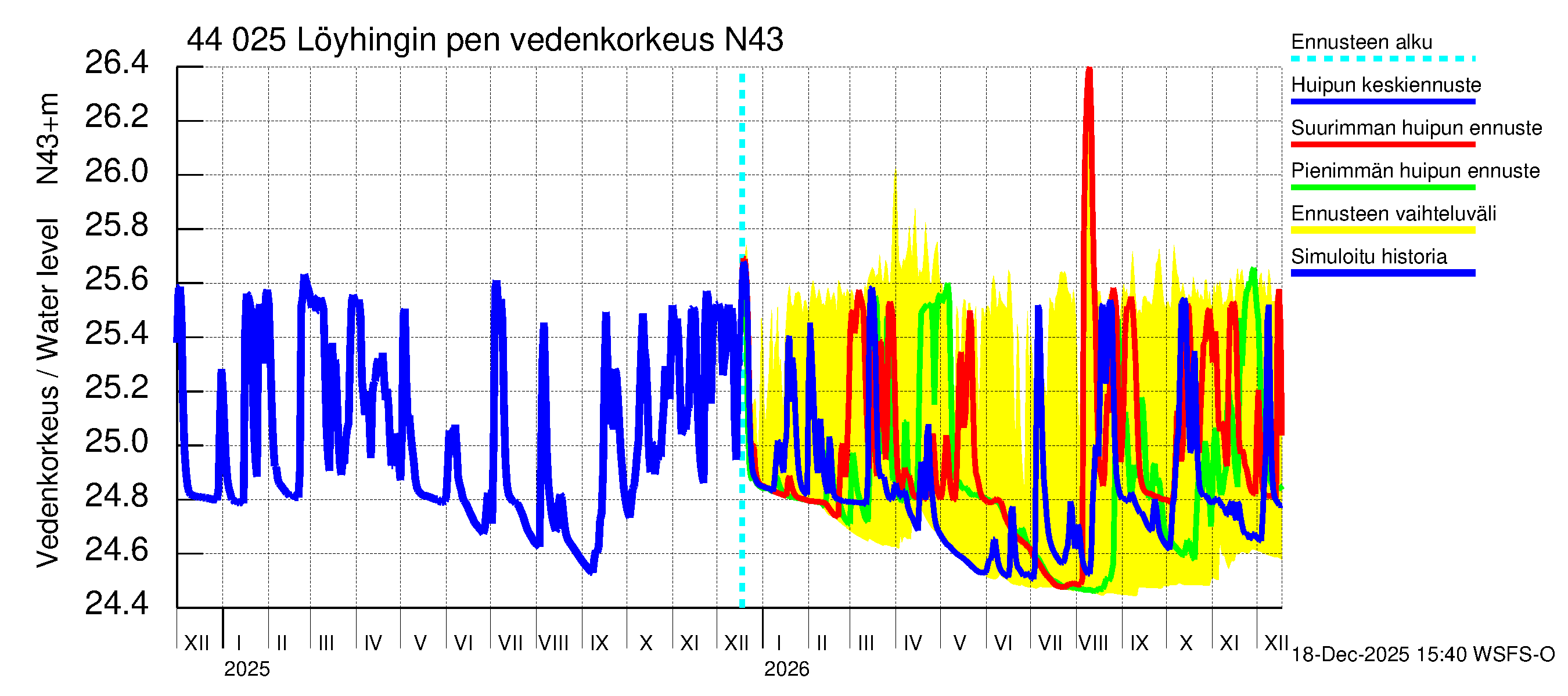 Lapuanjoen vesistöalue - Löyhingin pengerrys: Vedenkorkeus - huippujen keski- ja ääriennusteet