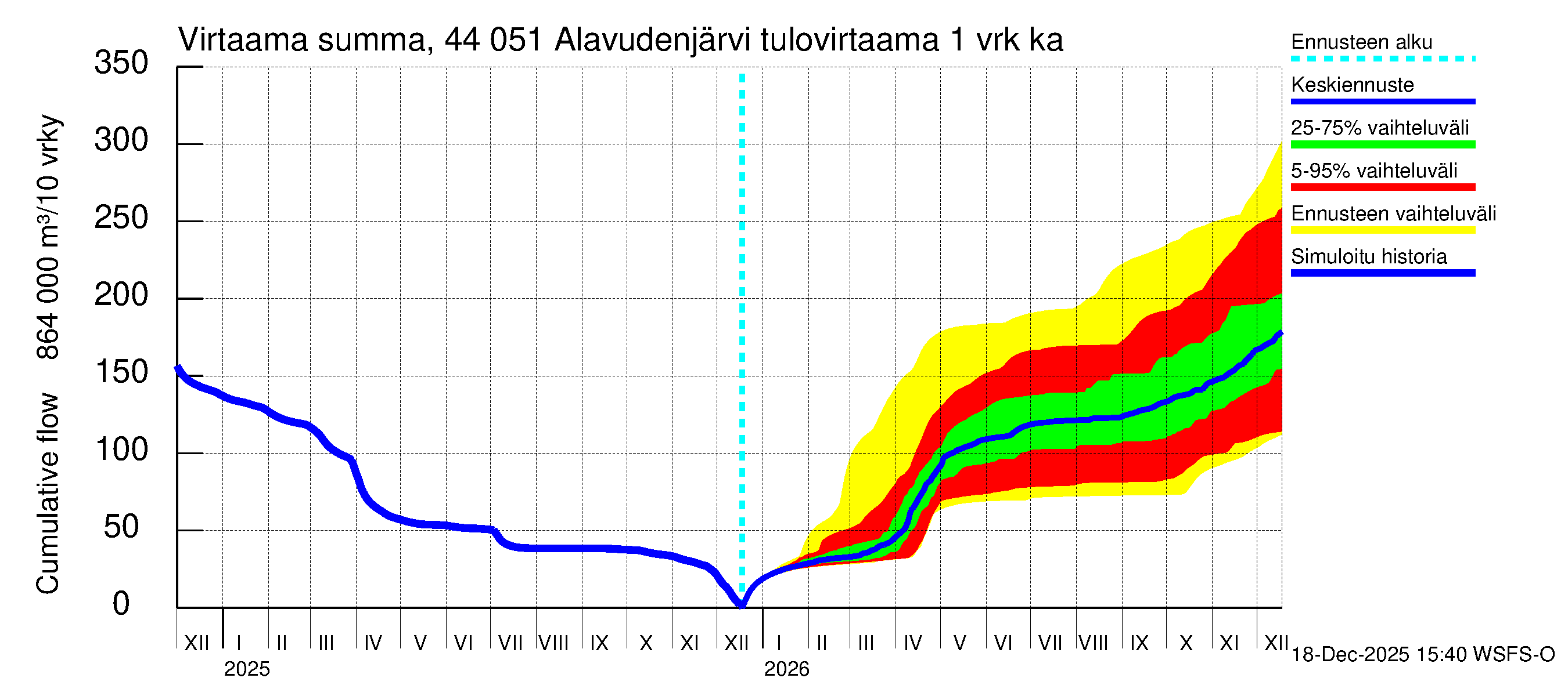 Lapuanjoen vesistöalue - Alavudenjärvi: Tulovirtaama (usean vuorokauden liukuva keskiarvo) - jakaumaennuste