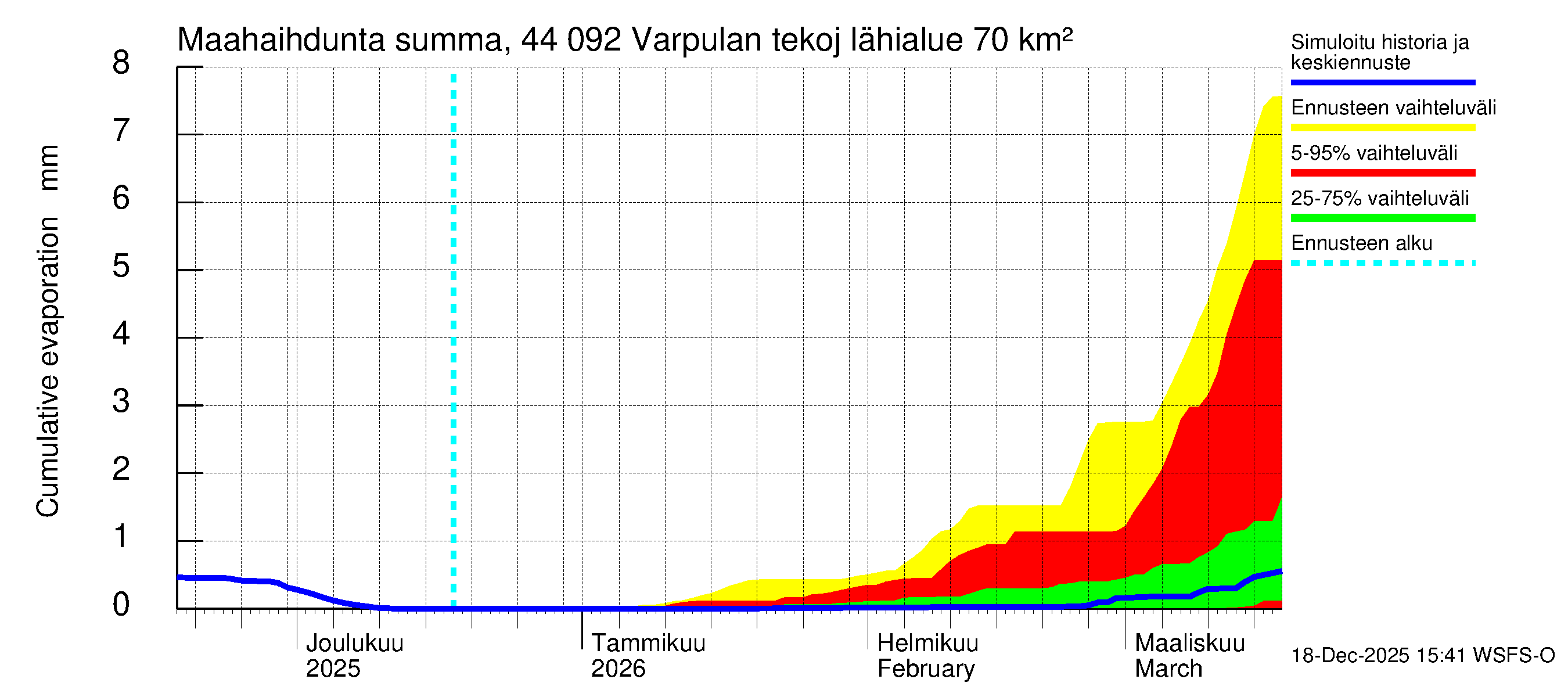 Lapuanjoen vesistöalue - Varpulan tekojärvi: Haihdunta maa-alueelta - summa