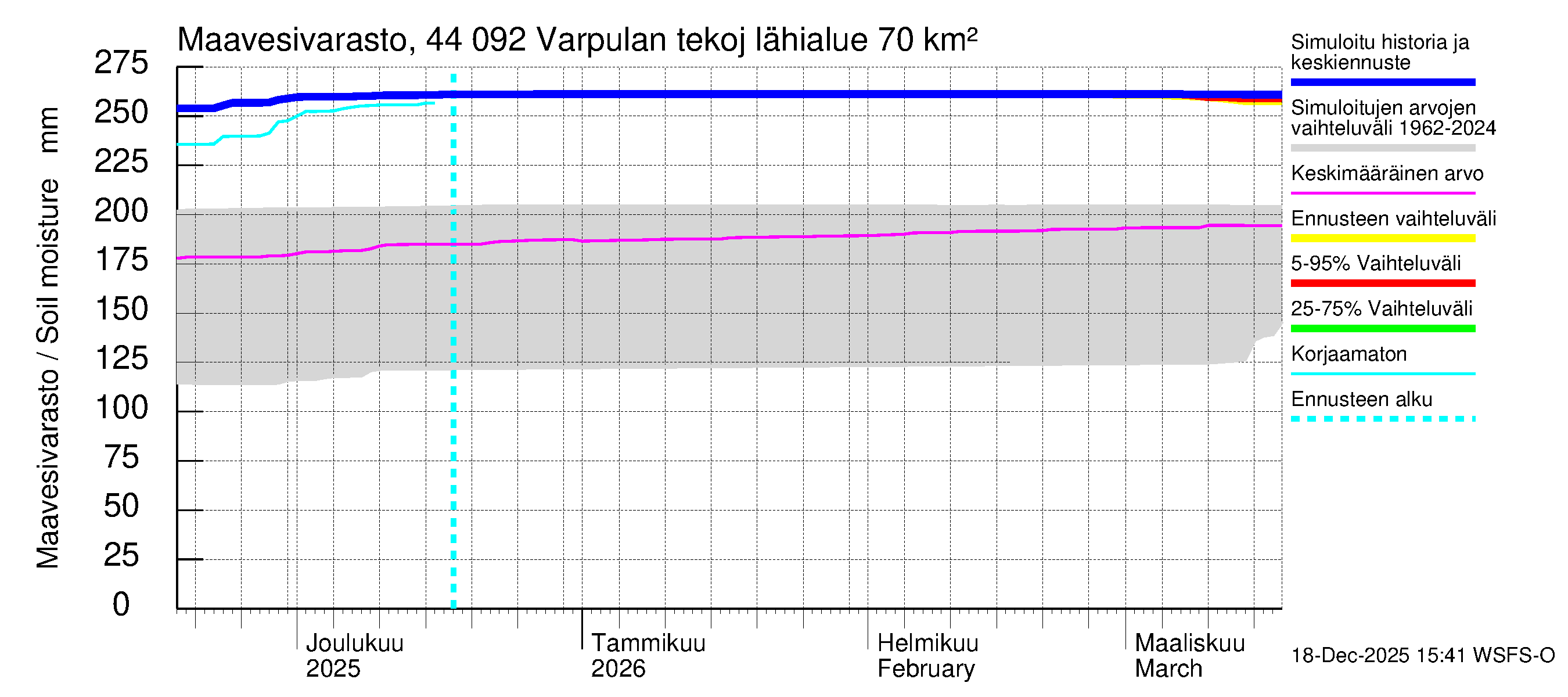 Lapuanjoen vesistöalue - Varpulan tekojärvi: Vedenkorkeus - jakaumaennuste