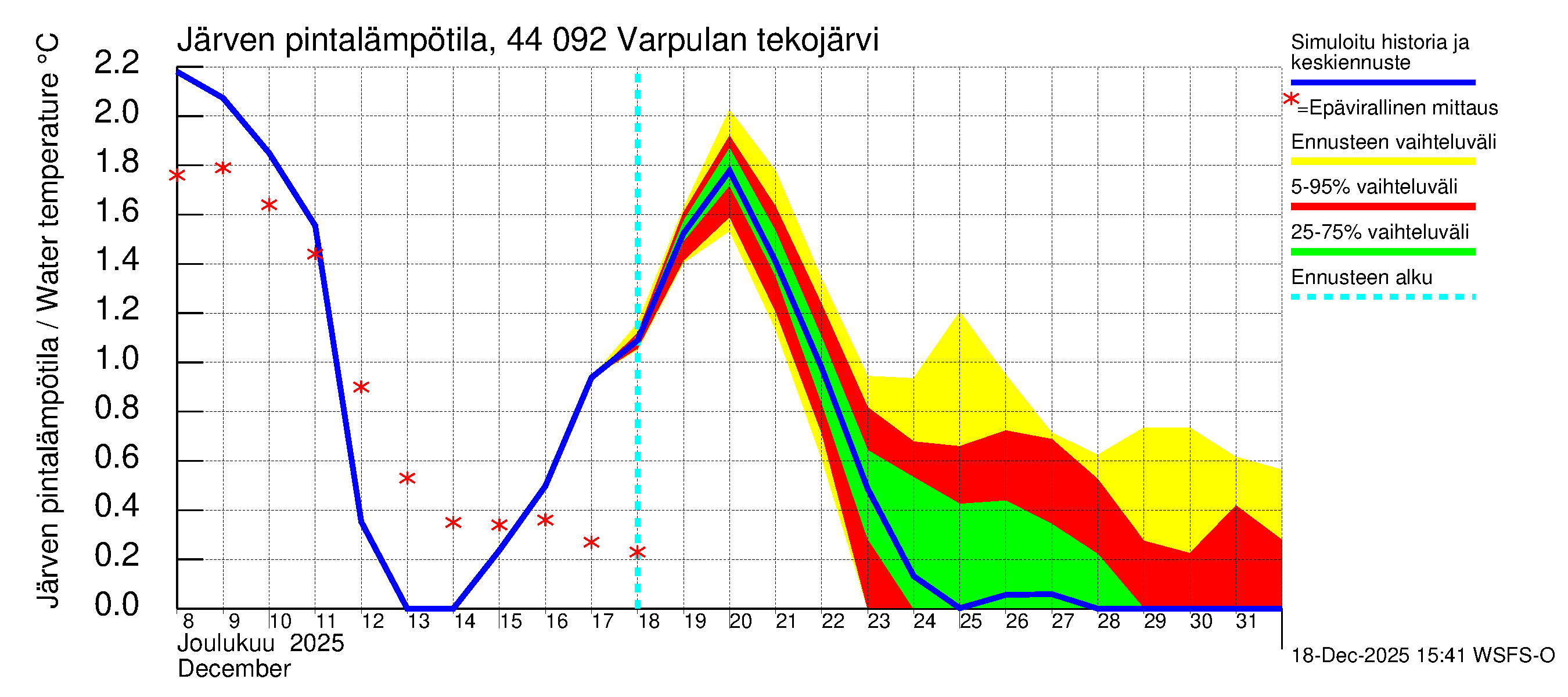Lapuanjoen vesistöalue - Varpulan tekojärvi: Järven pintalämpötila
