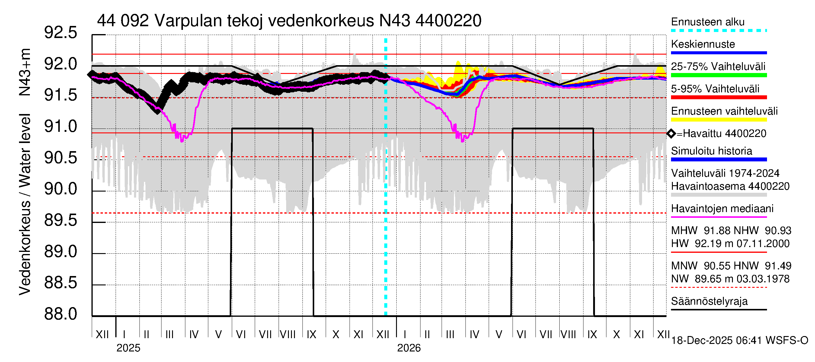 Lapuanjoen vesistöalue - Varpulan tekojärvi: Vedenkorkeus - huippujen keski- ja ääriennusteet