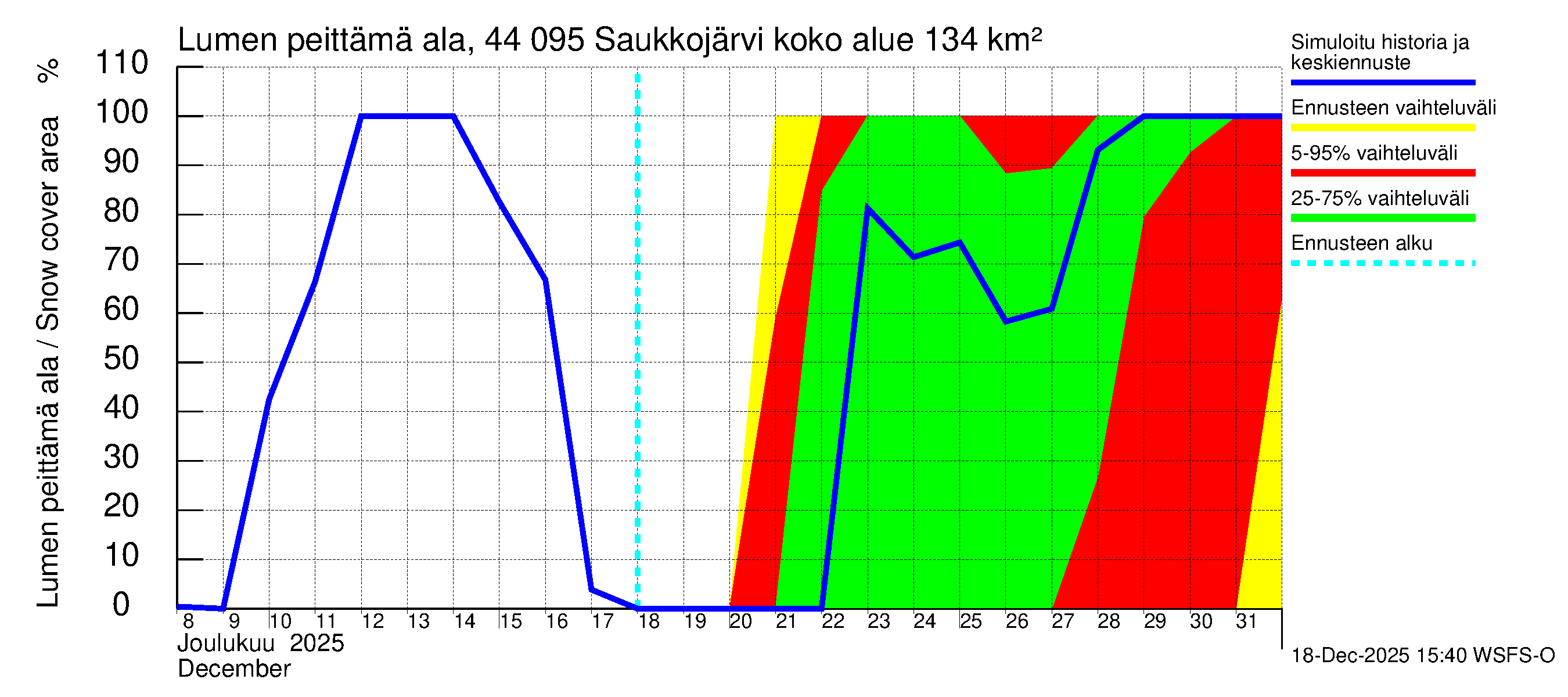 Lapuanjoen vesistöalue - Saukkojärvi: Lumen peittämä ala