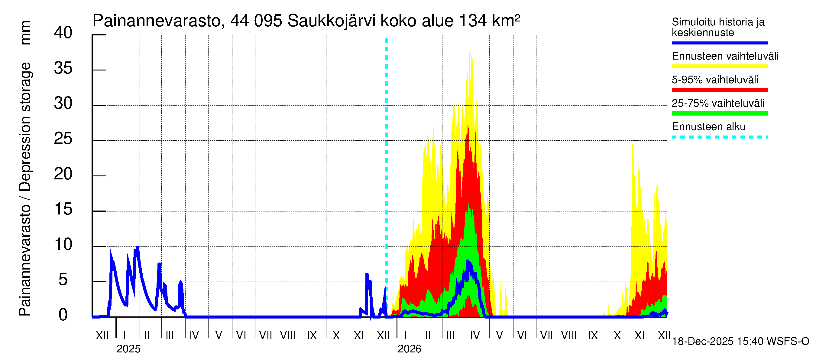 Lapuanjoen vesistöalue - Saukkojärvi: Vedenkorkeus - jakaumaennuste