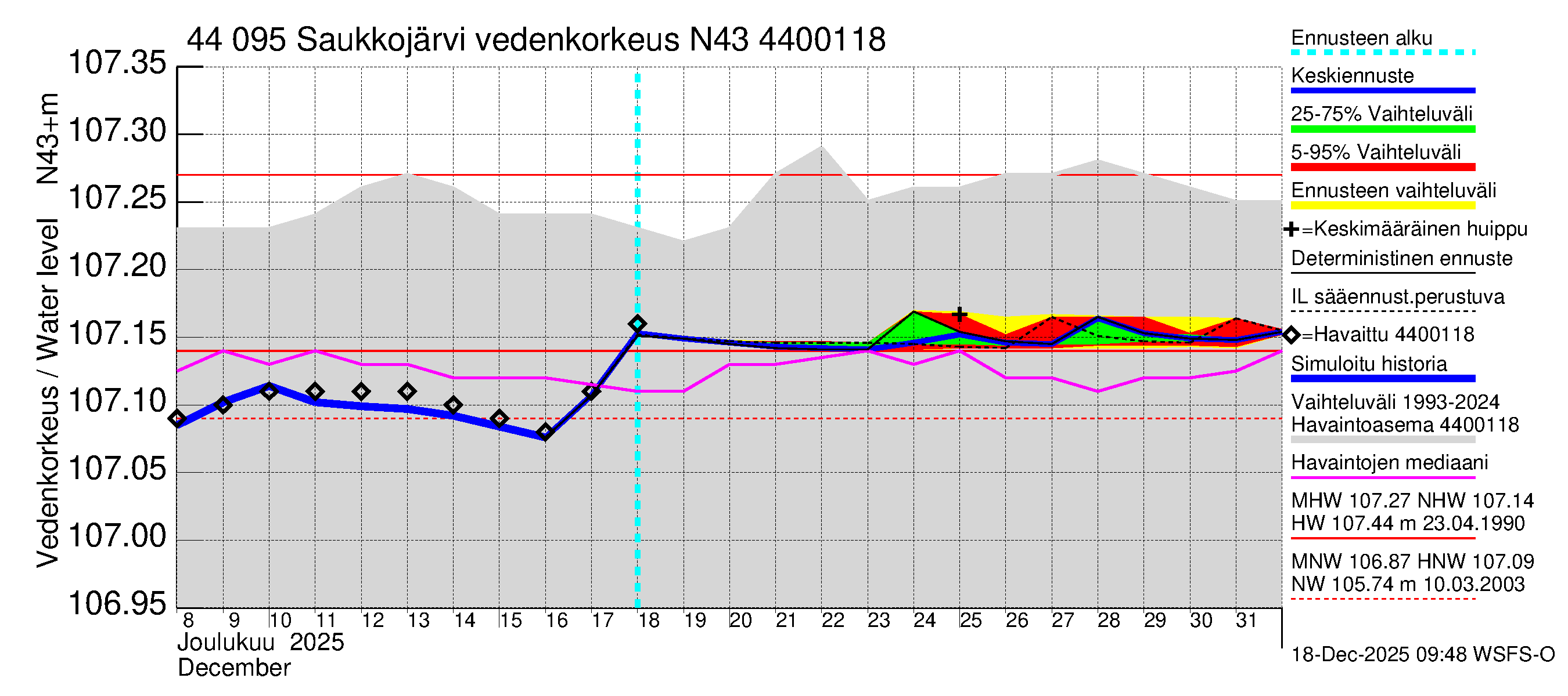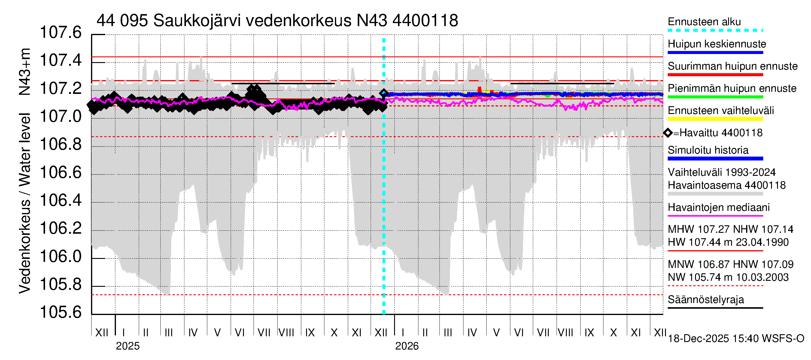 Lapuanjoen vesistöalue - Saukkojärvi: Vedenkorkeus - huippujen keski- ja ääriennusteet