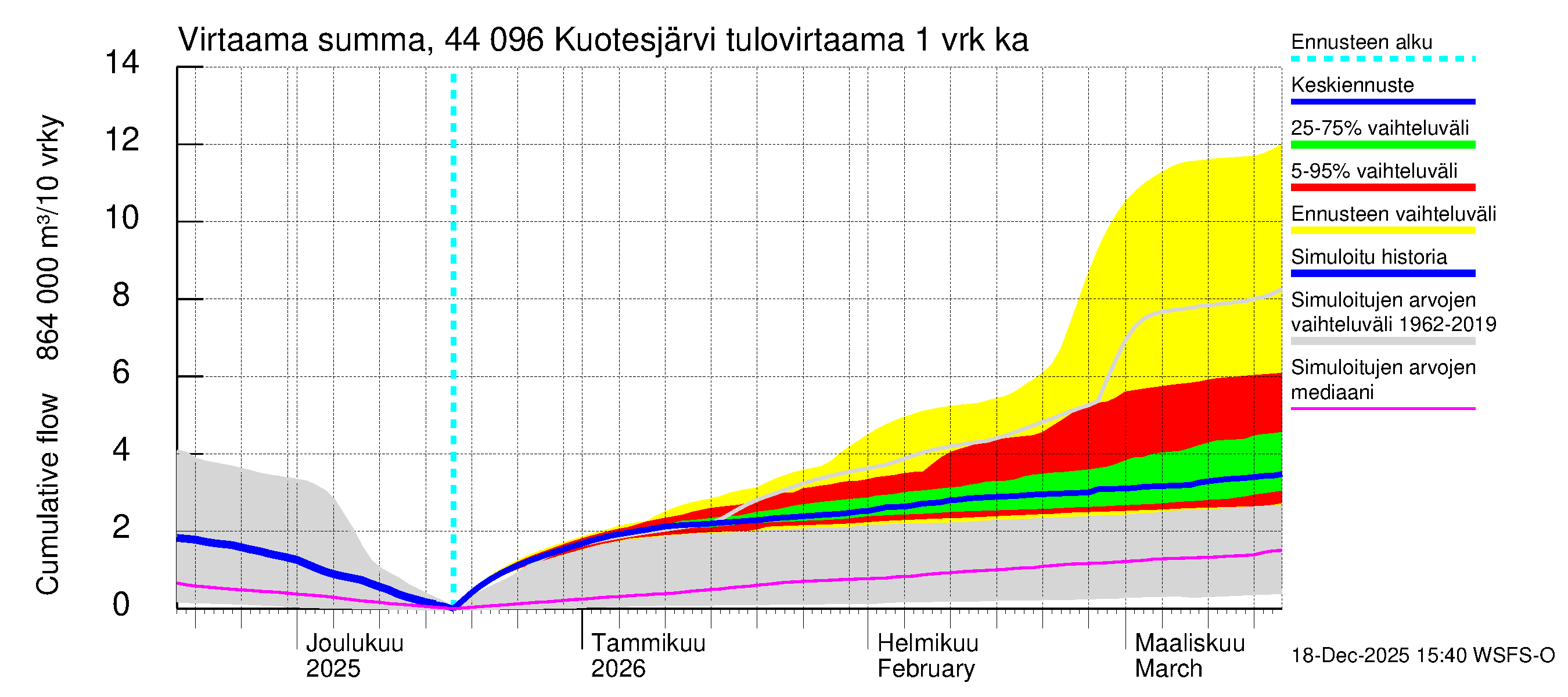 Lapuanjoen vesistöalue - Kuotesjärvi: Tulovirtaama (usean vuorokauden liukuva keskiarvo) - jakaumaennuste