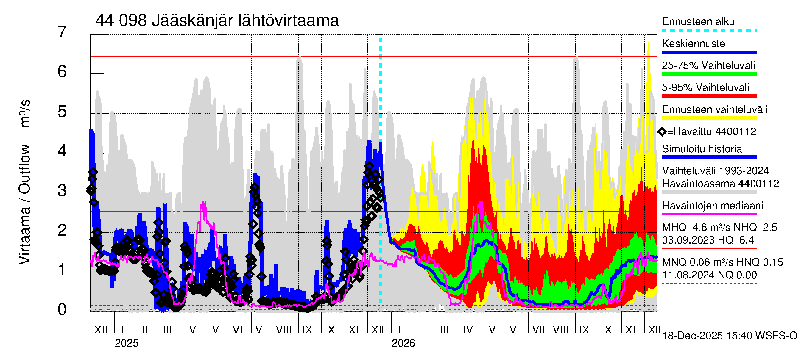 Lapuanjoen vesistöalue - Jääskänjärvi: Lähtövirtaama / juoksutus - huippujen keski- ja ääriennusteet