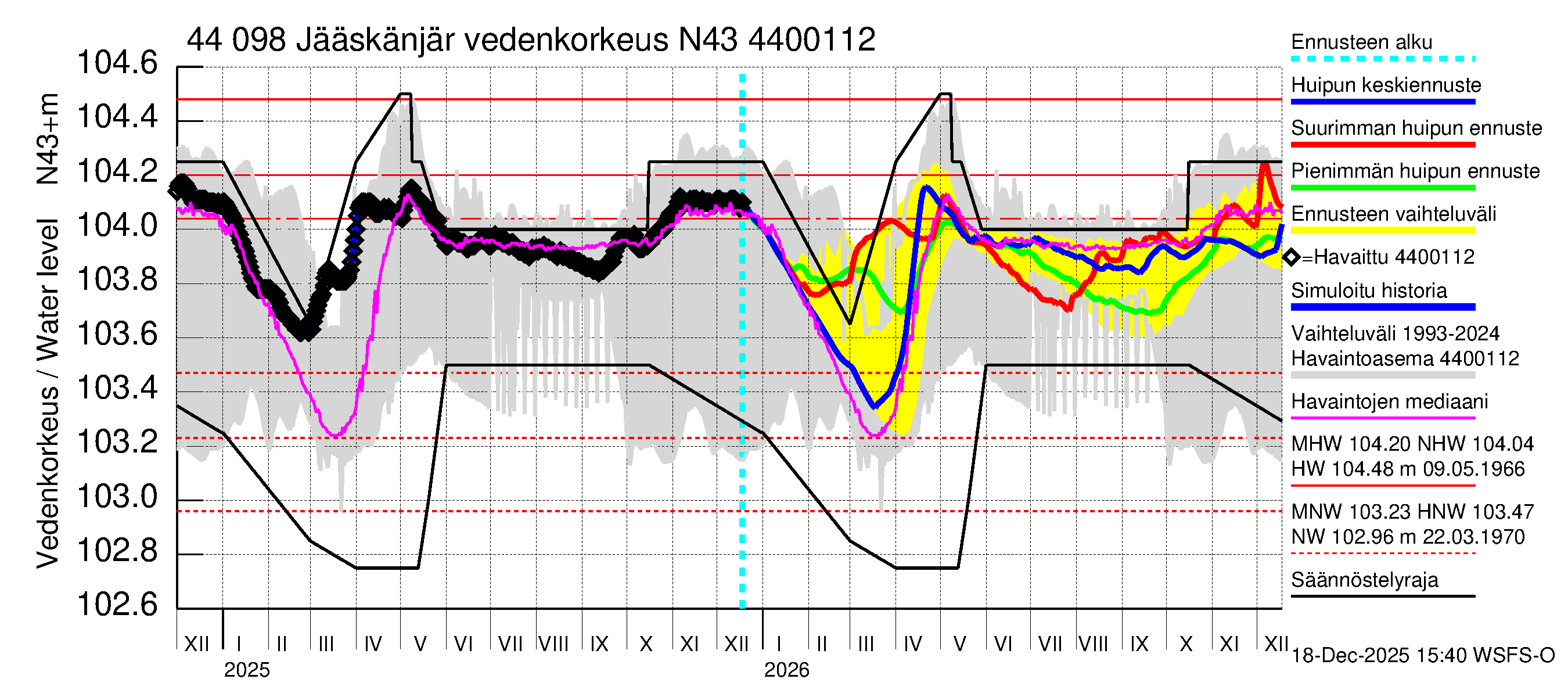 Lapuanjoen vesistöalue - Jääskänjärvi: Vedenkorkeus - huippujen keski- ja ääriennusteet