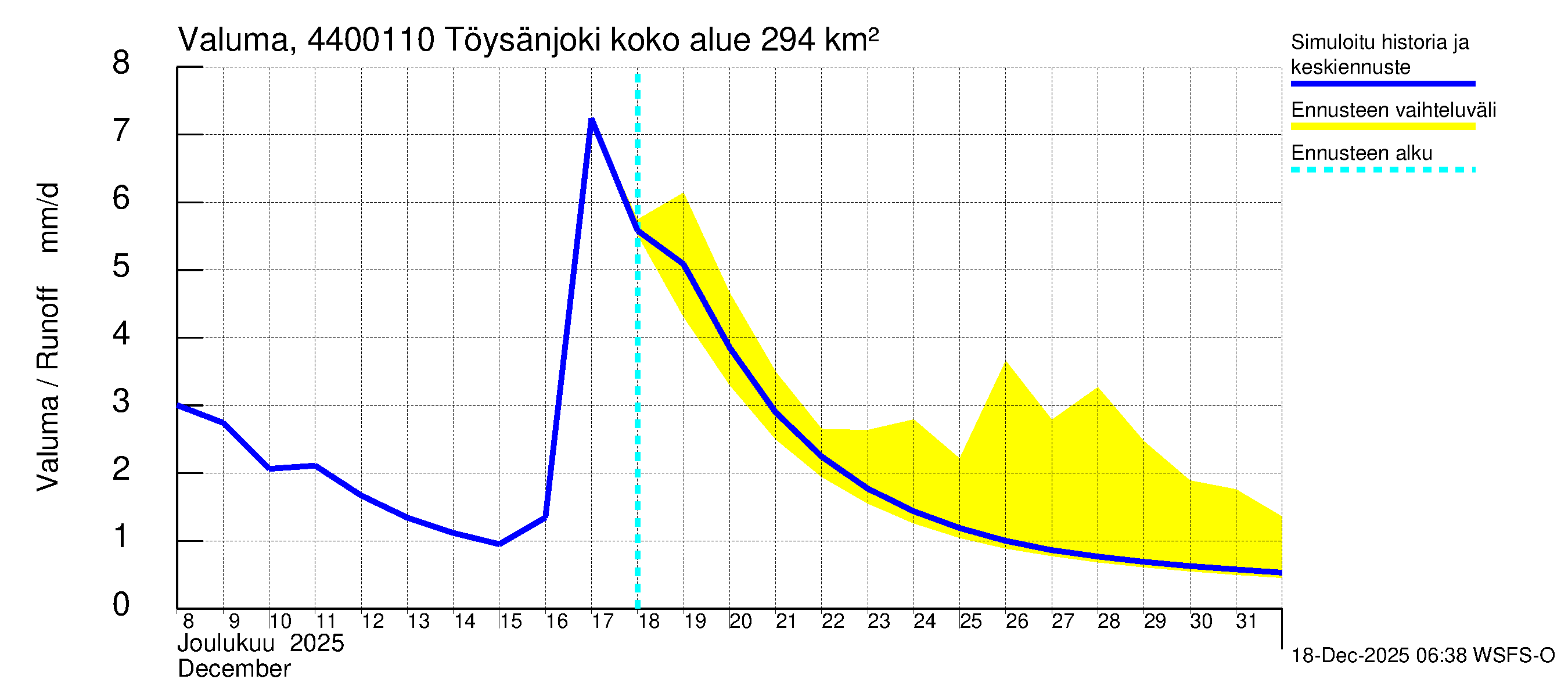 Asiantuntijan työpöytä > Lapuanjoen vesistöalue > Töysänjoki > Koko valuma-alue / Lähivaluma-alue Ennustekuvien tulkinta