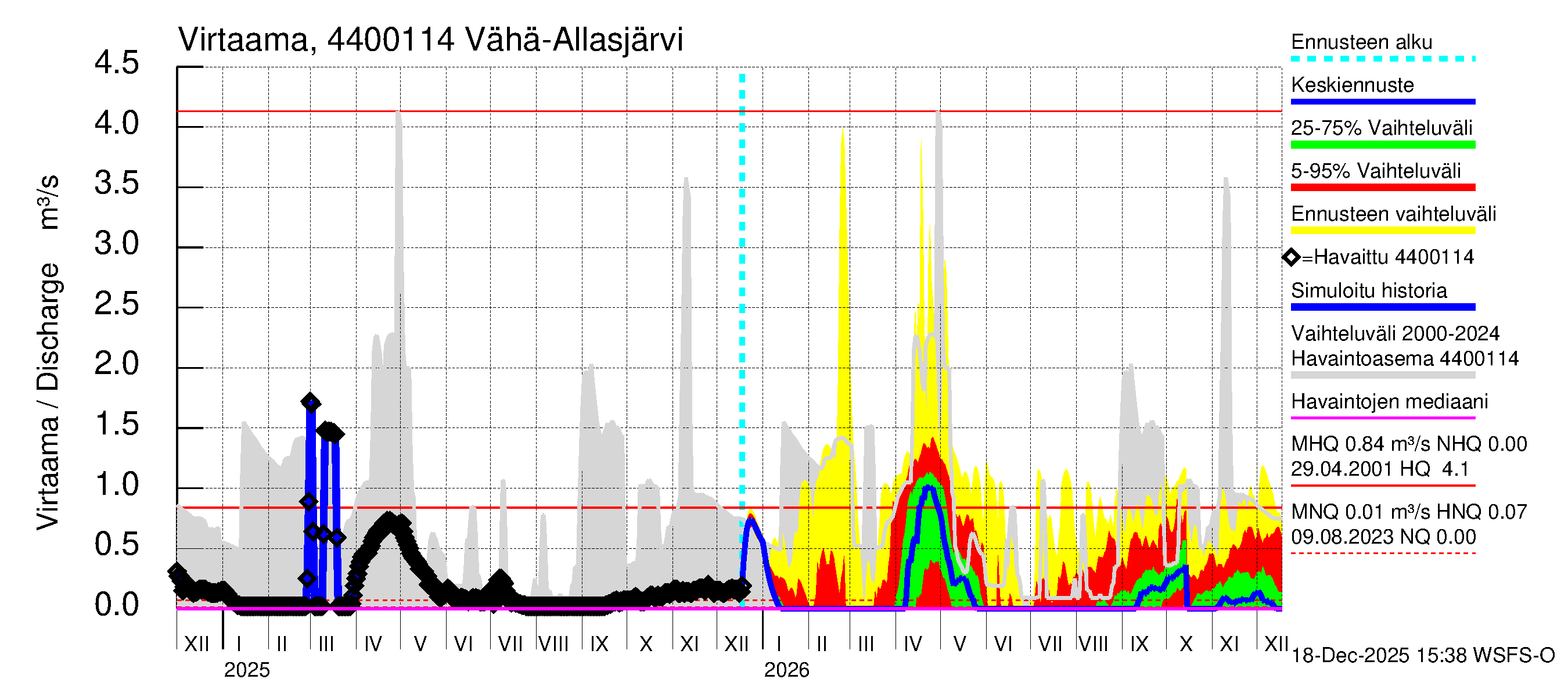 Lapuanjoen vesistöalue - Vähä-Allasjärvi juoksutus: Virtaama / juoksutus - huippujen keski- ja ääriennusteet