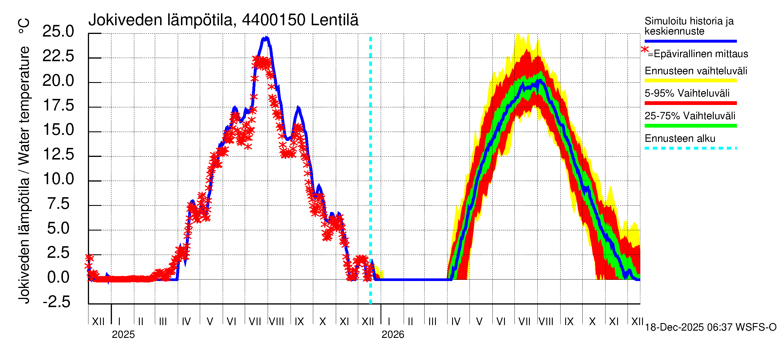 Lapuanjoen vesistöalue - Lentilä: Jokiveden lämpötila