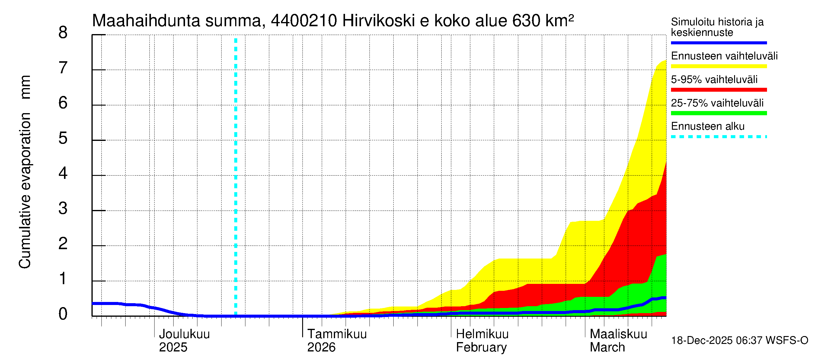 Lapuanjoen vesistöalue - Hirvikoski ei Kylmäk.: Haihdunta maa-alueelta - summa