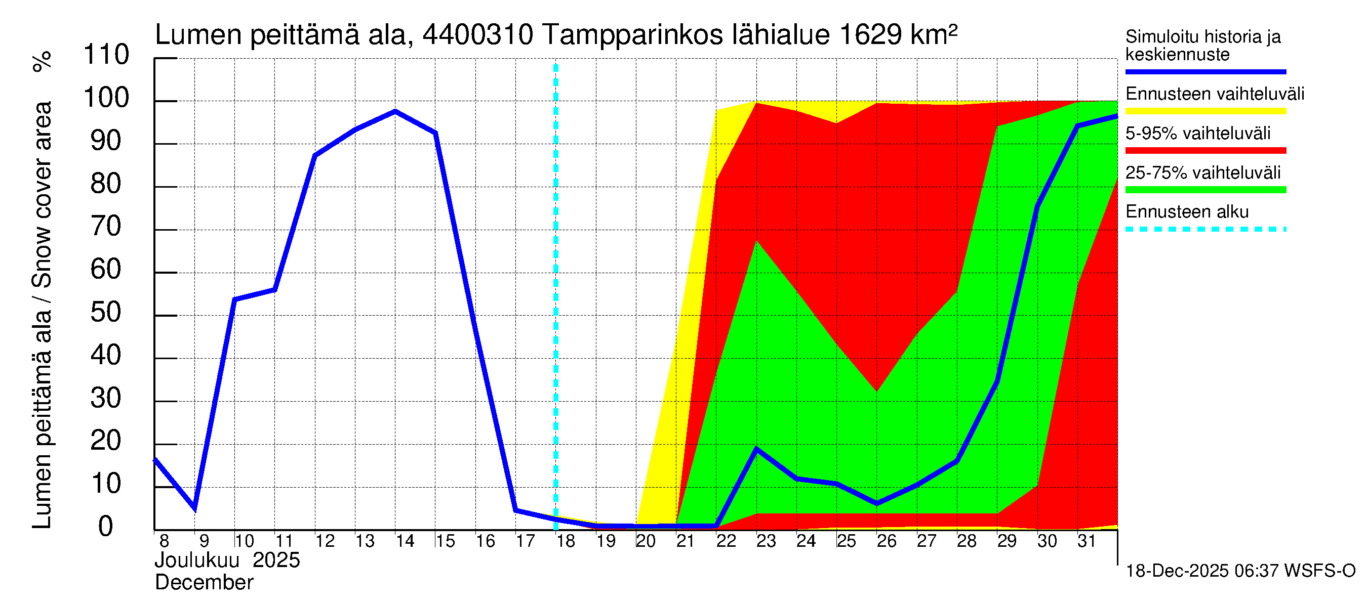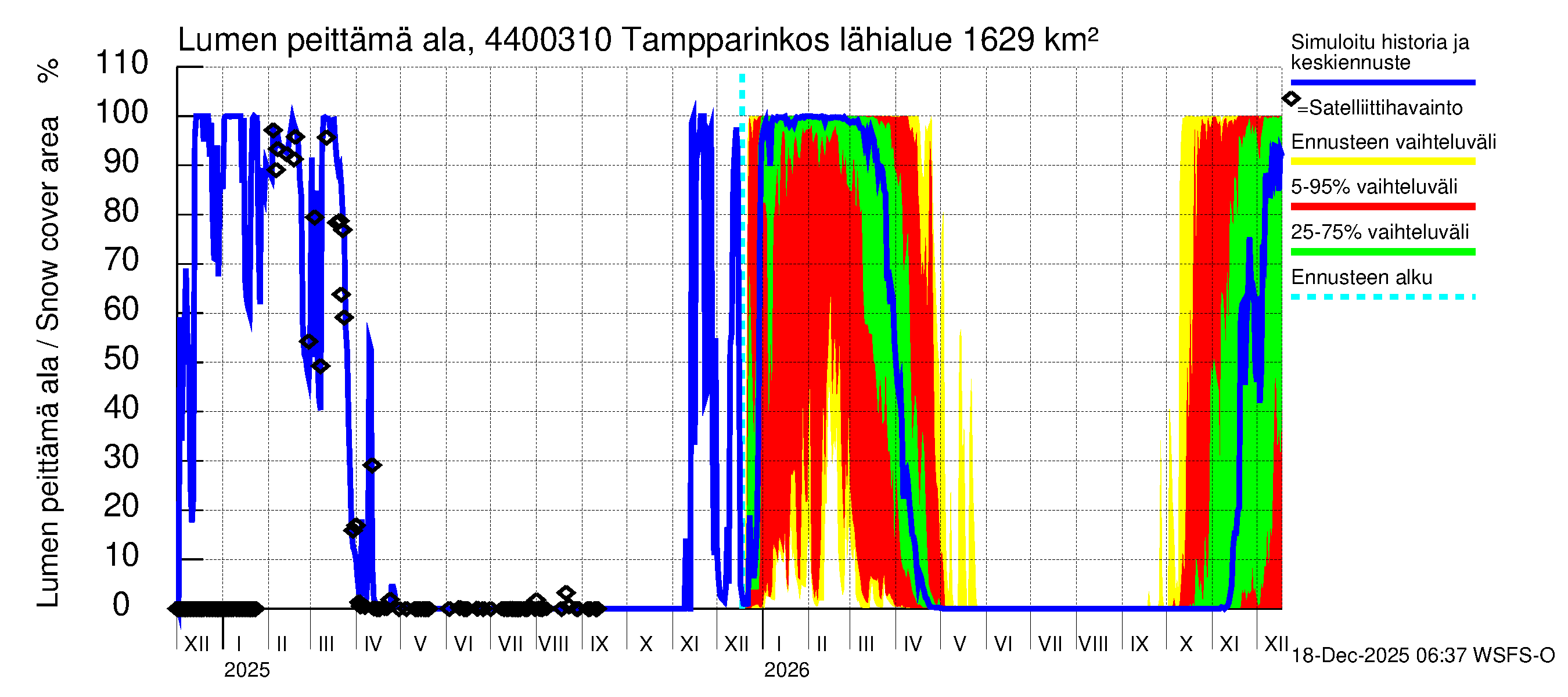 Lapuanjoen vesistöalue - Tampparinkoski: Lumen peittämä ala