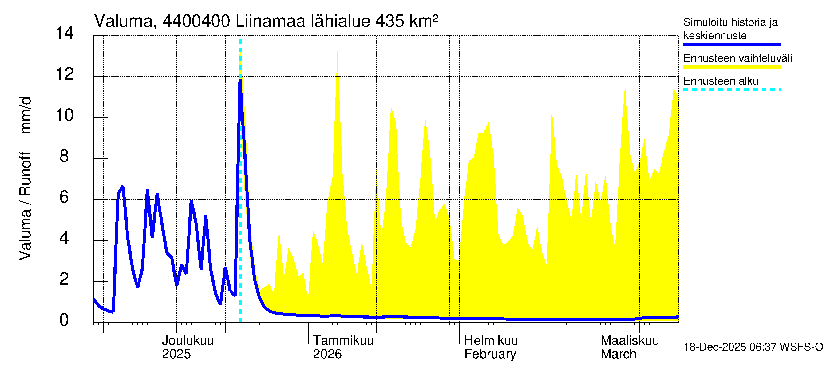 Asiantuntijan työpöytä > Lapuanjoen vesistöalue > Liinamaa > Koko valuma-alue / Lähivaluma-alue Ennustekuvien tulkinta