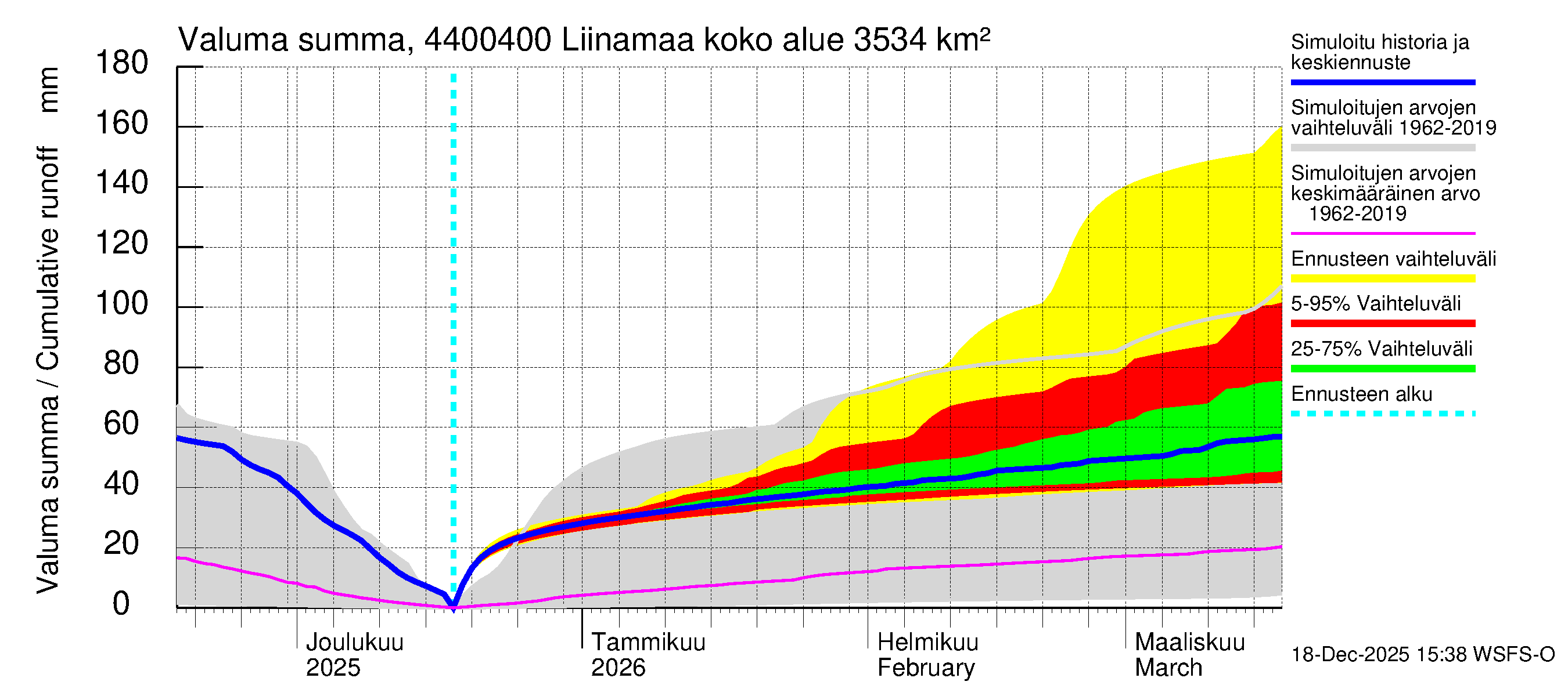 Lapuanjoen vesistöalue - Liinamaa: Virtaama / juoksutus - jakaumaennuste