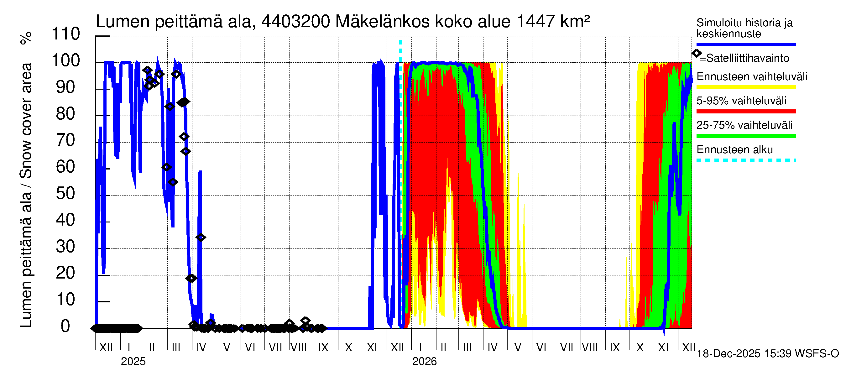 Lapuanjoen vesistöalue - Mäkelänkoski: Lumen peittämä ala