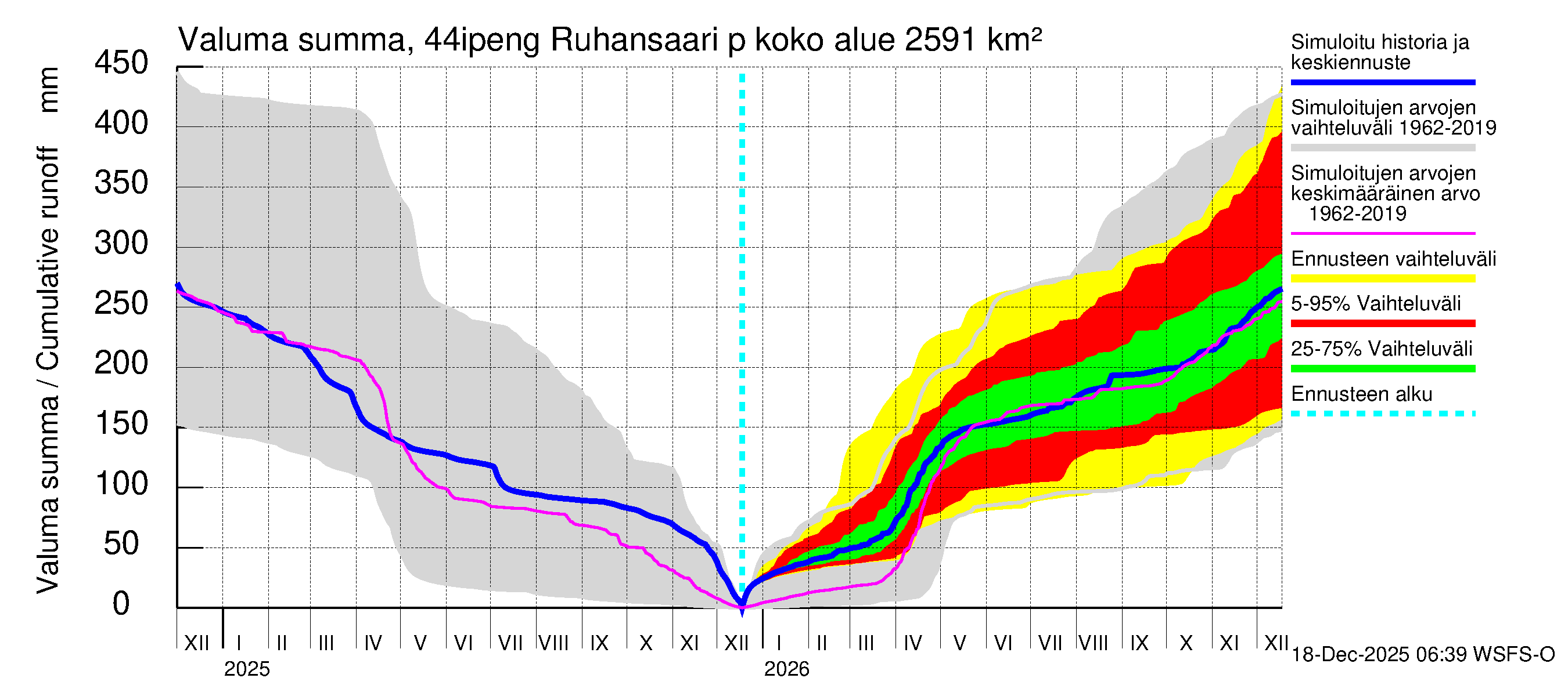 Lapuanjoen vesistöalue - Ruhansaari pengerrysalueelle: Virtaama / juoksutus - huippujen keski- ja ääriennusteet