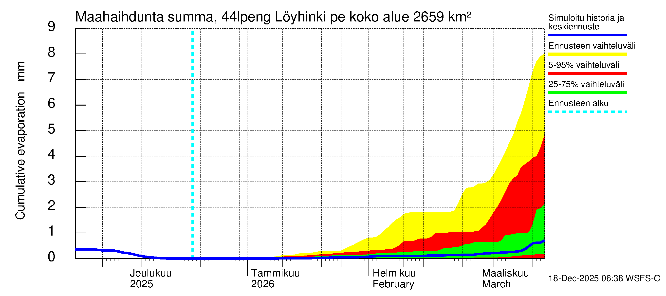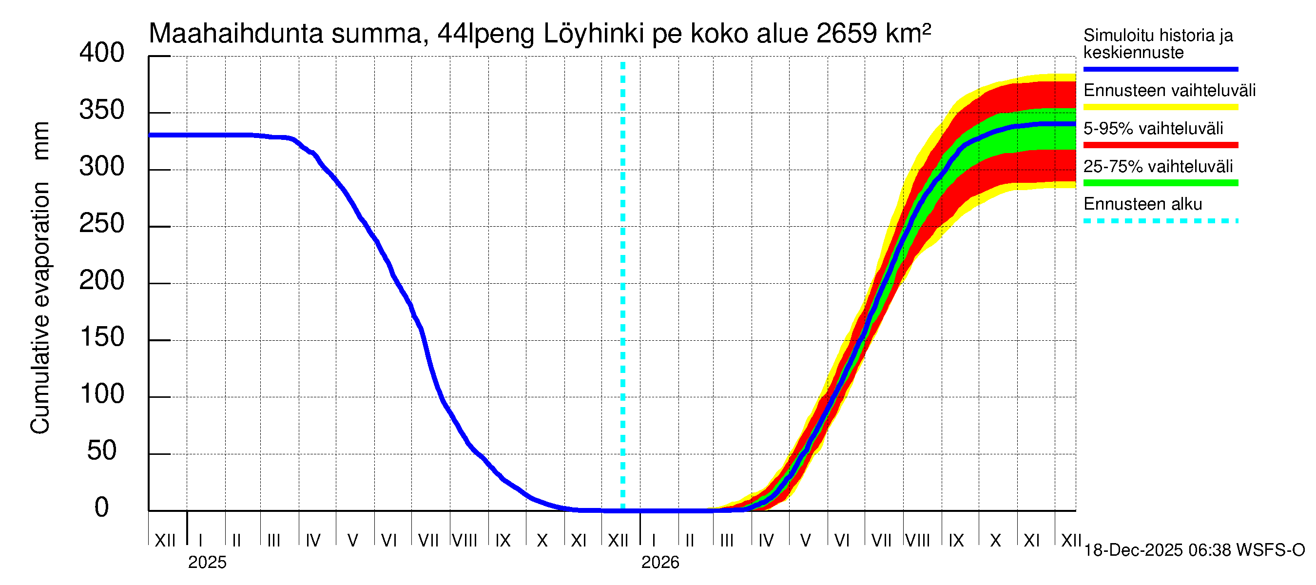 Lapuanjoen vesistöalue - Löyhinki pengerrysalueelle: Haihdunta maa-alueelta - summa