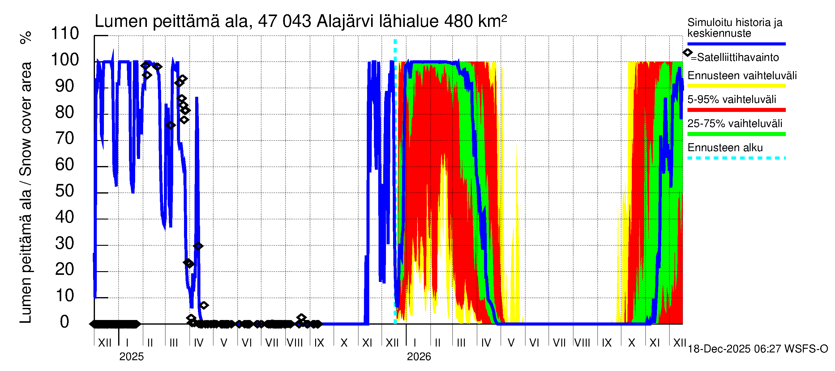 Ähtävänjoen vesistöalue - Alajärvi: Lumen peittämä ala
