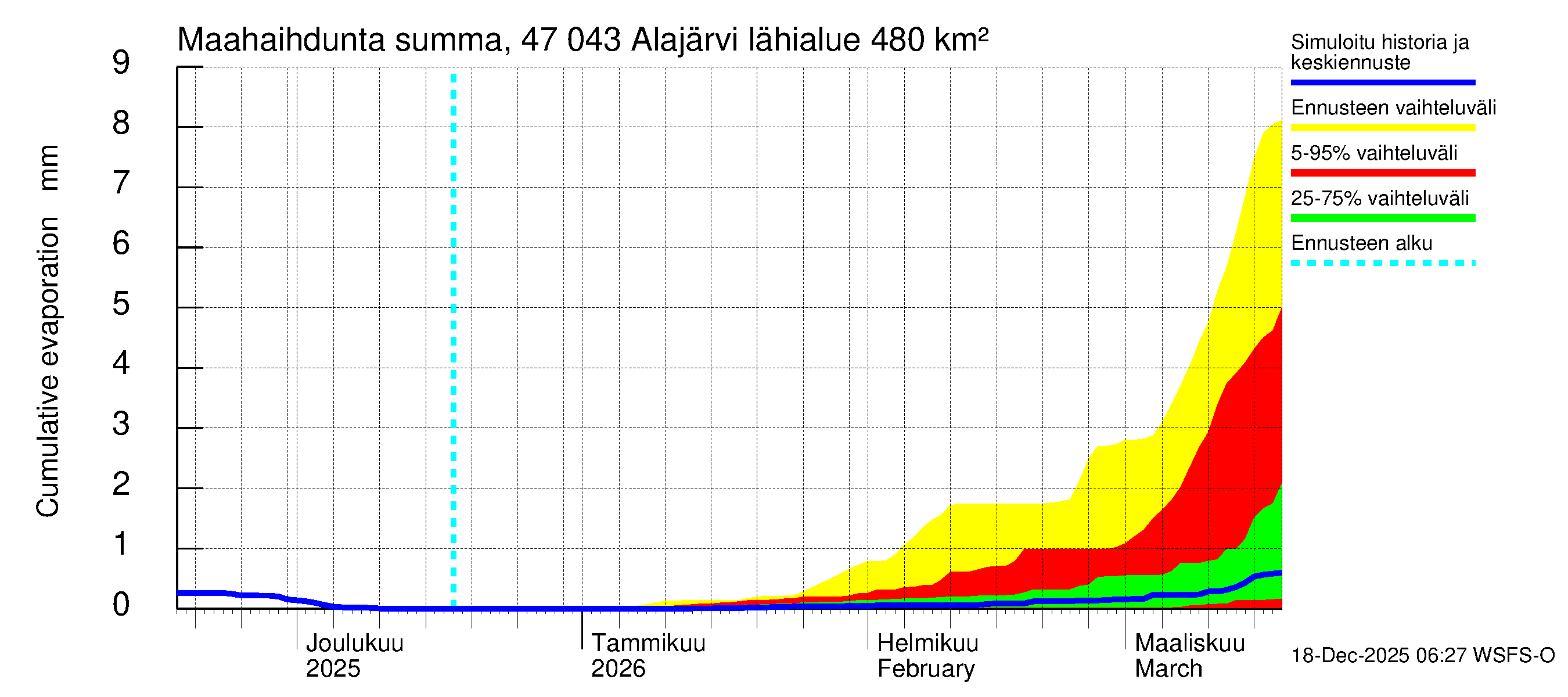 Ähtävänjoen vesistöalue - Alajärvi: Haihdunta maa-alueelta - summa