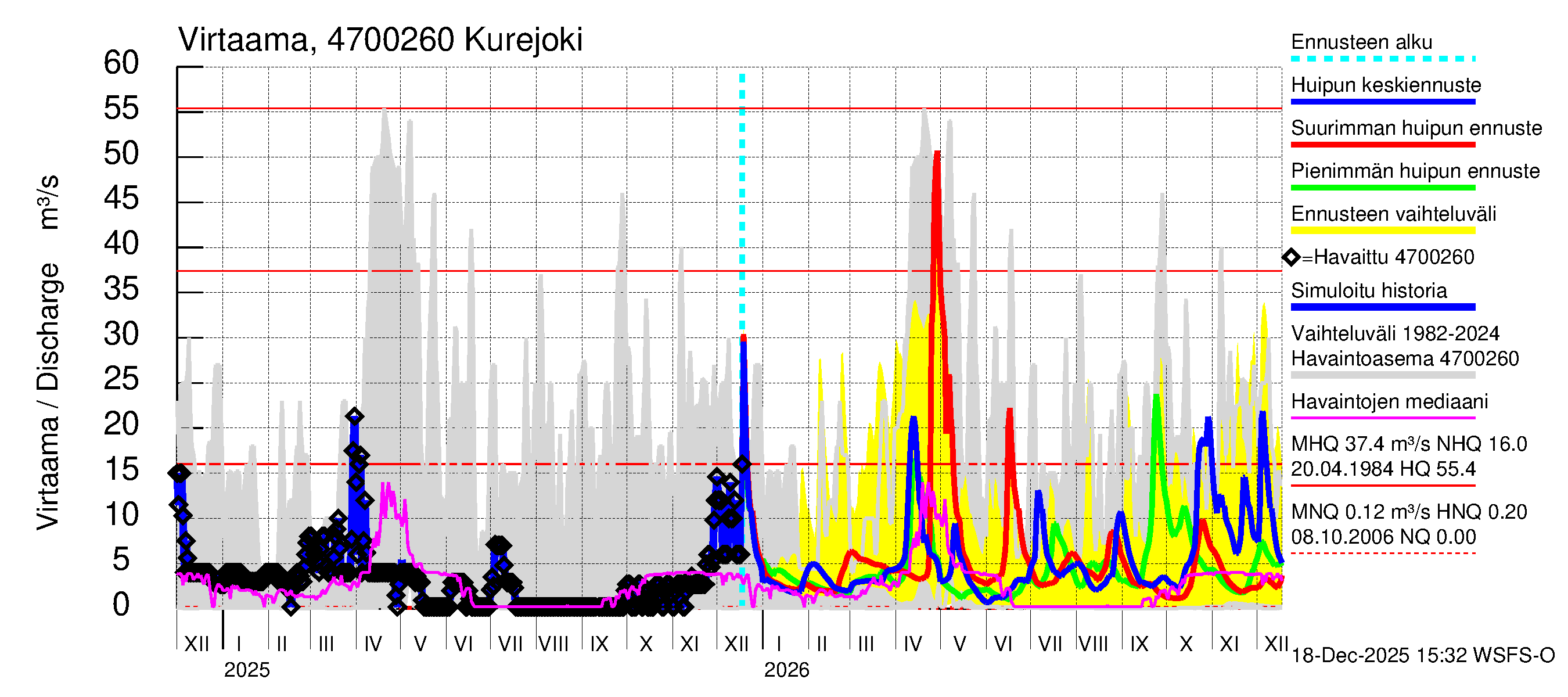 Ähtävänjoen vesistöalue - Kurejoki: Virtaama / juoksutus - huippujen keski- ja ääriennusteet