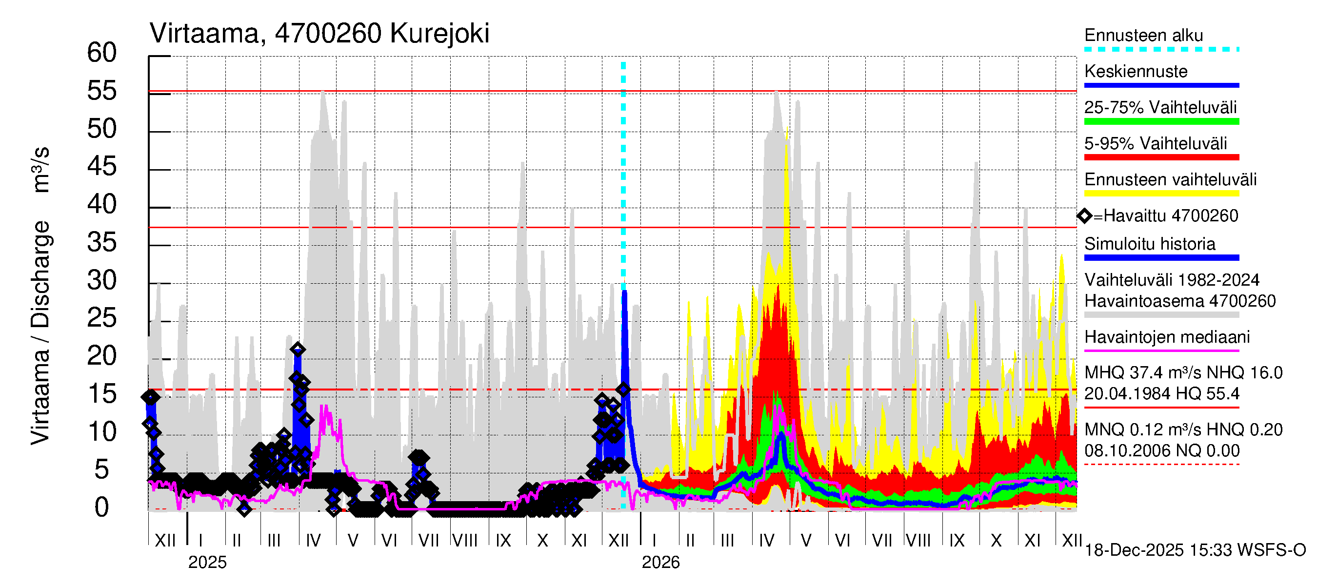 Ähtävänjoen vesistöalue - Kurejoki: Virtaama / juoksutus - huippujen keski- ja ääriennusteet