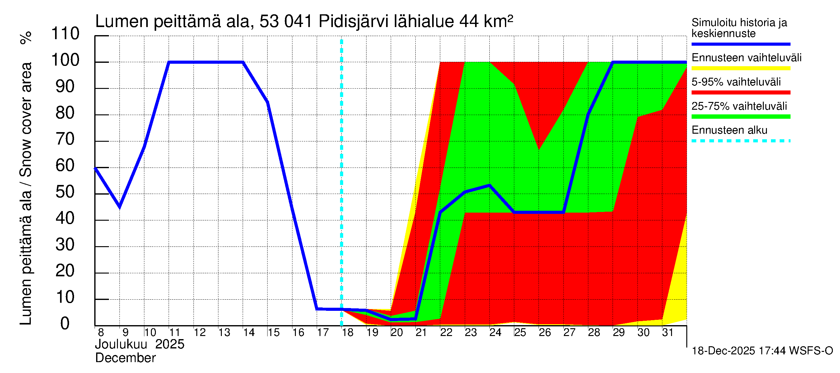 Kalajoen vesistöalue - Pidisjärvi: Lumen peittämä ala