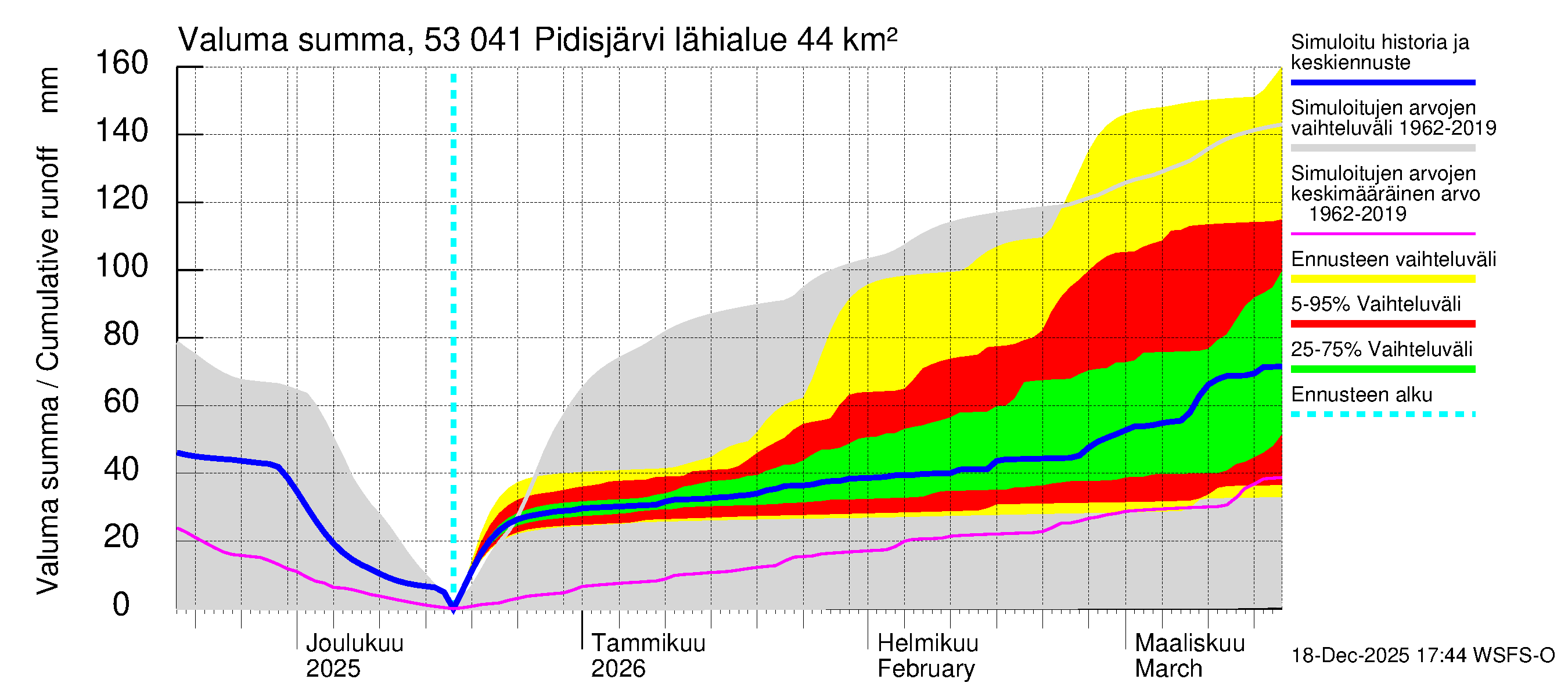Kalajoen vesistöalue - Pidisjärvi: Lähtövirtaama / juoksutus - jakaumaennuste