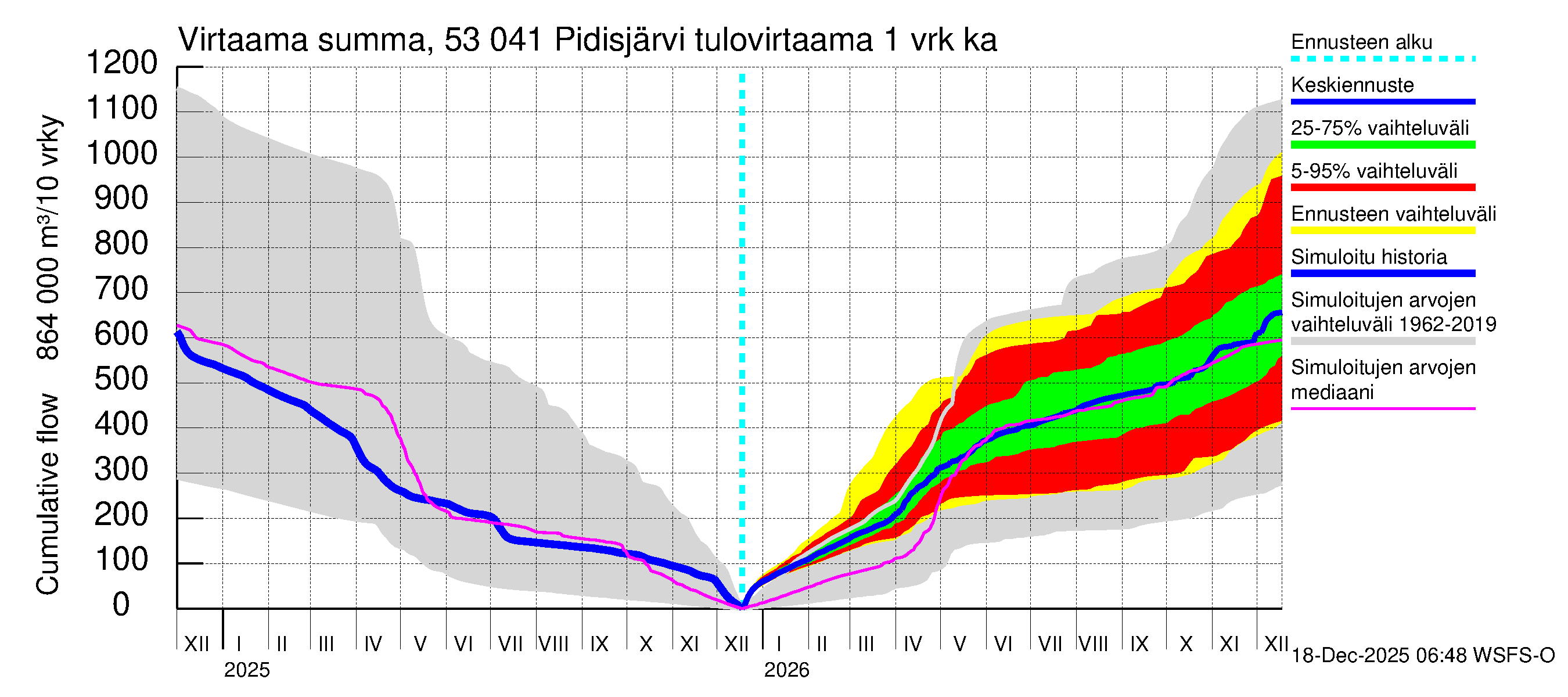 Kalajoen vesistöalue - Pidisjärvi: Tulovirtaama (usean vuorokauden liukuva keskiarvo) - jakaumaennuste