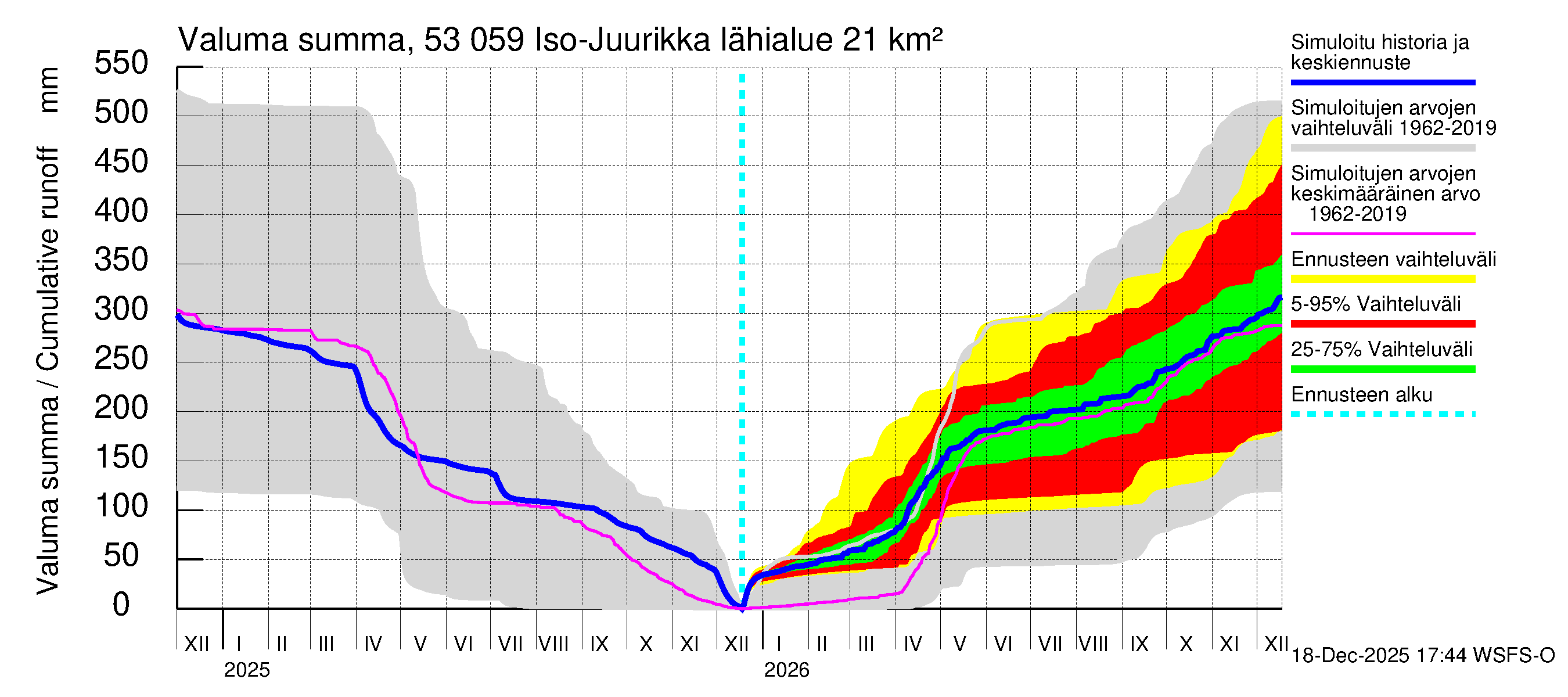 Kalajoen vesistöalue - Iso-Juurikka: Lähtövirtaama / juoksutus - huippujen keski- ja ääriennusteet
