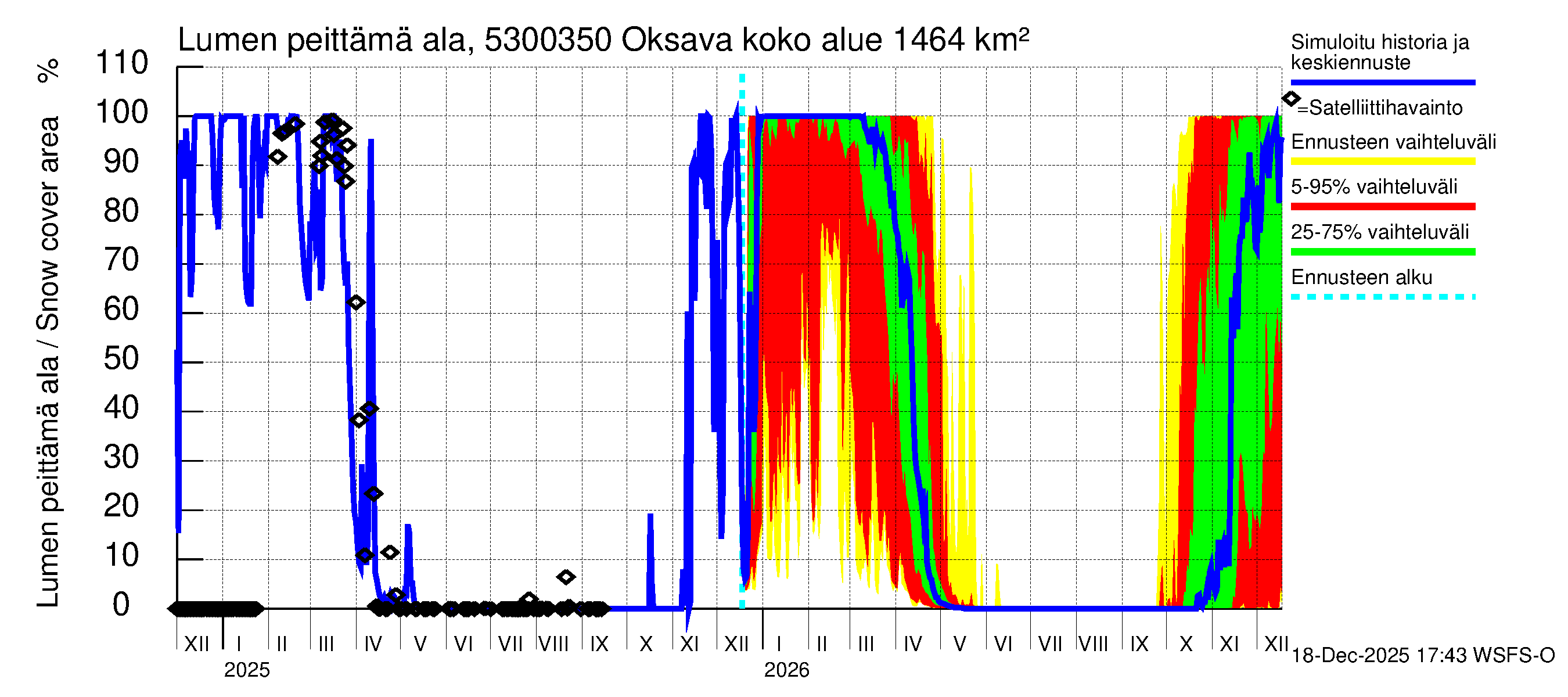 Kalajoen vesistöalue - Oksava: Lumen peittämä ala