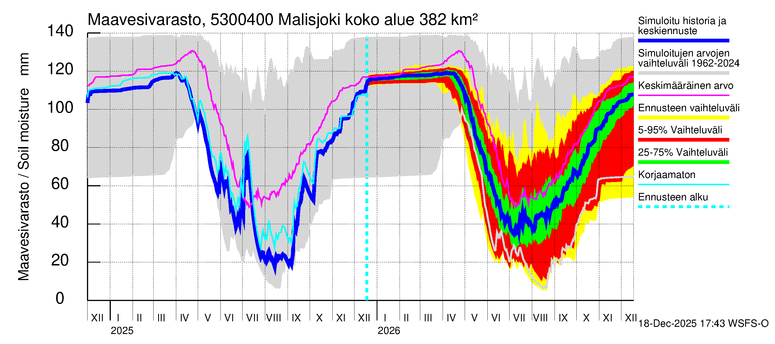 Kalajoen vesistöalue - Malisjoki: Vedenkorkeus - huippujen keski- ja ääriennusteet