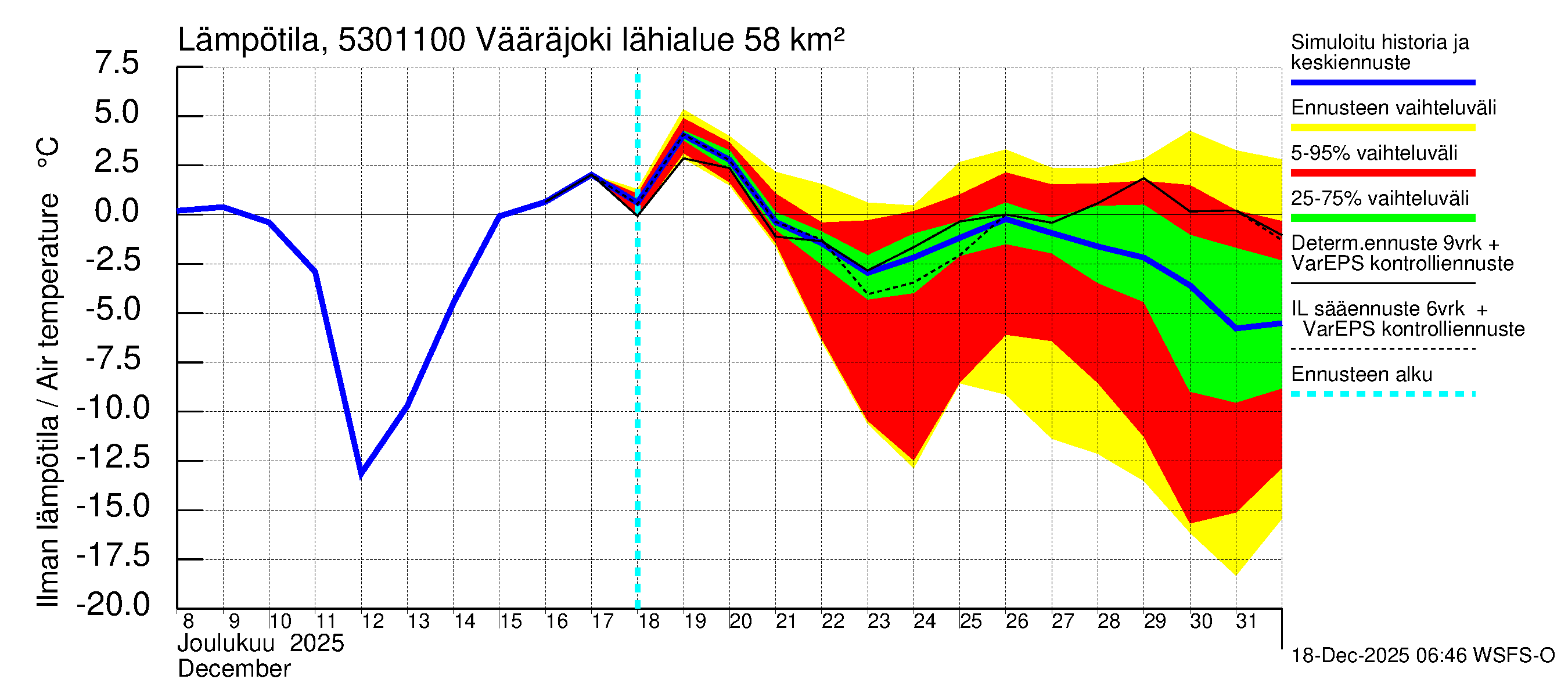 Asiantuntijan työpöytä > Kalajoen vesistöalue > Vääräjoki Rautio > Koko valuma-alue / Lähivaluma-alue Ennustekuvien tulkinta