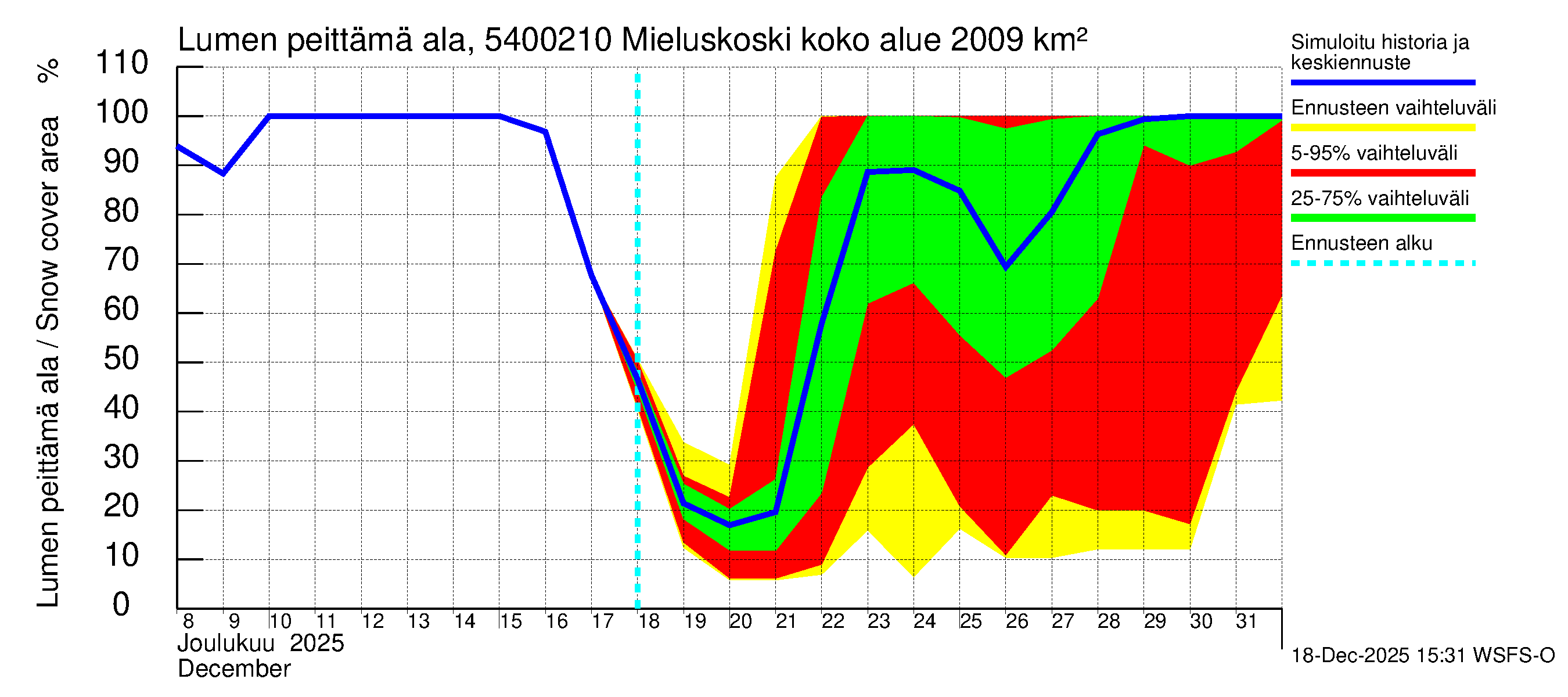 Pyhäjoen vesistöalue - Mieluskoski: Lumen peittämä ala