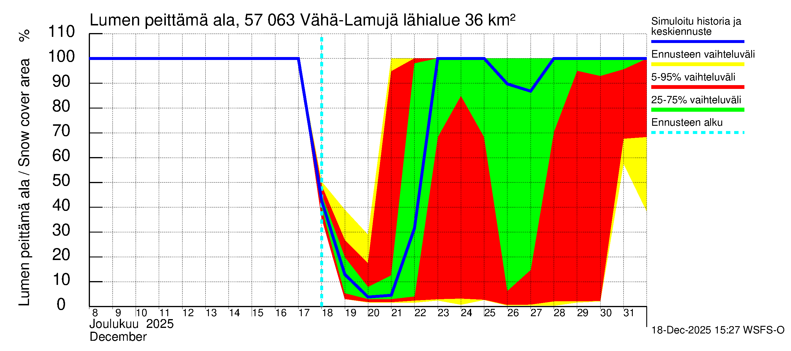Siikajoen vesistöalue - Vähä-Lamujärvi: Lumen peittämä ala