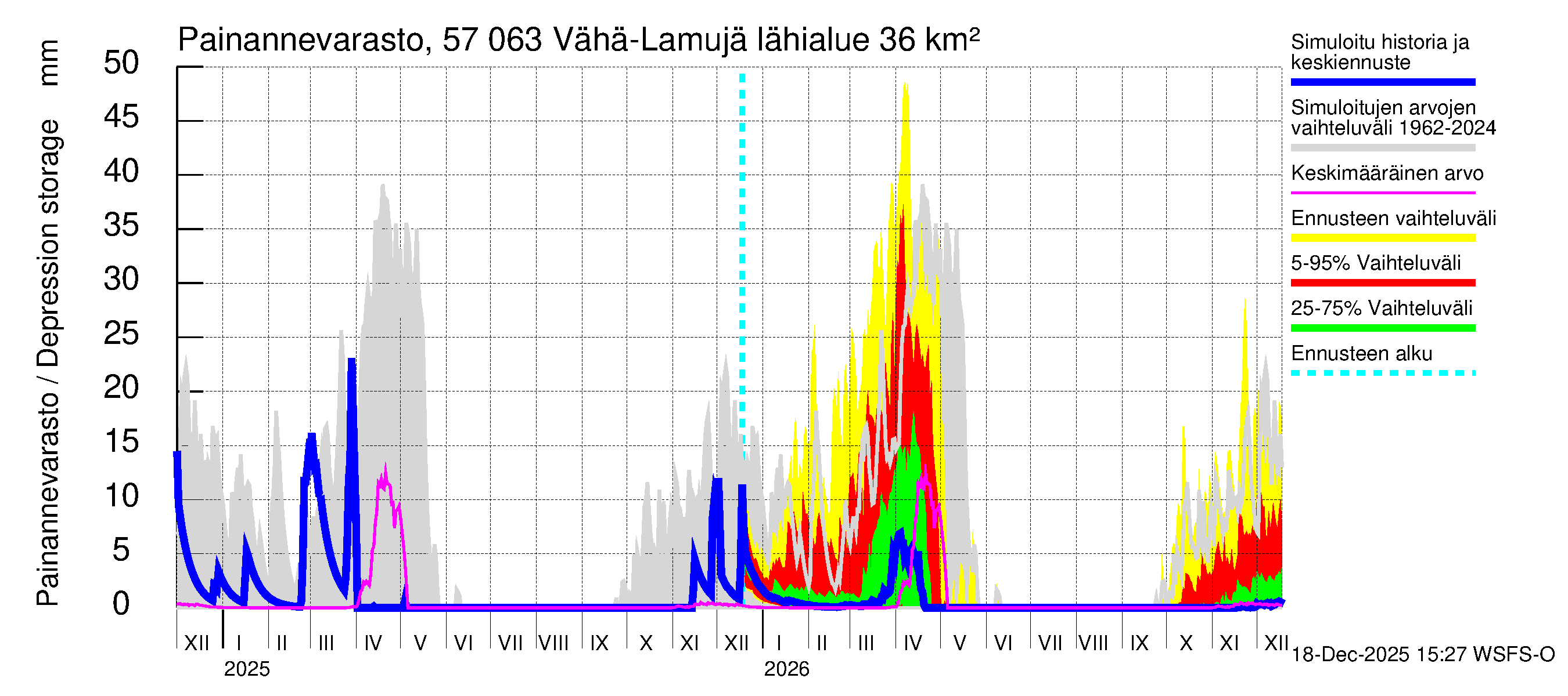 Siikajoen vesistöalue - Vähä-Lamujärvi: Vedenkorkeus - huippujen keski- ja ääriennusteet